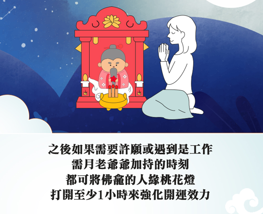 4. 最後將月老及所有供品全部擺好即啟動神明力量