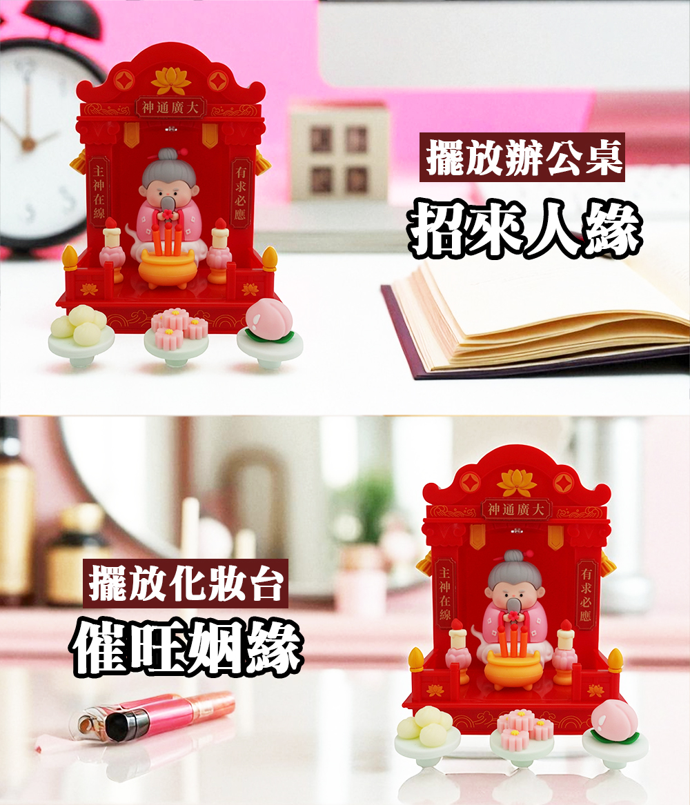 擺在辦公室不僅能增加桃花魅力,更能帶來上班療癒小確幸,天天心情美美的! 感情不順、爭執不斷時,不妨動動手調整一下供品位置,小小互動就能轉換心境。若是感情遇到冷戰、誤會,只要點亮佛龕神光,就能立刻召喚月老守護,為你化解衝突、重燃甜蜜,讓良緣長長久久!