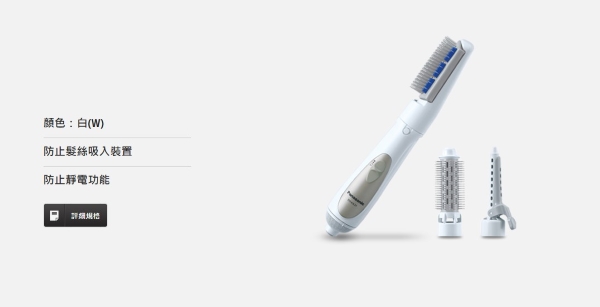 型號:EH-KA31顏色:白色 尺寸:48(寬)x195(長)x48(高)mm 重量:276g(主體) 電壓:110V/60Hz 消耗電力:600W 配件:整髮梳、捲髮梳、燙髮夾 BSMI:R31417產地:泰國 保固:一年