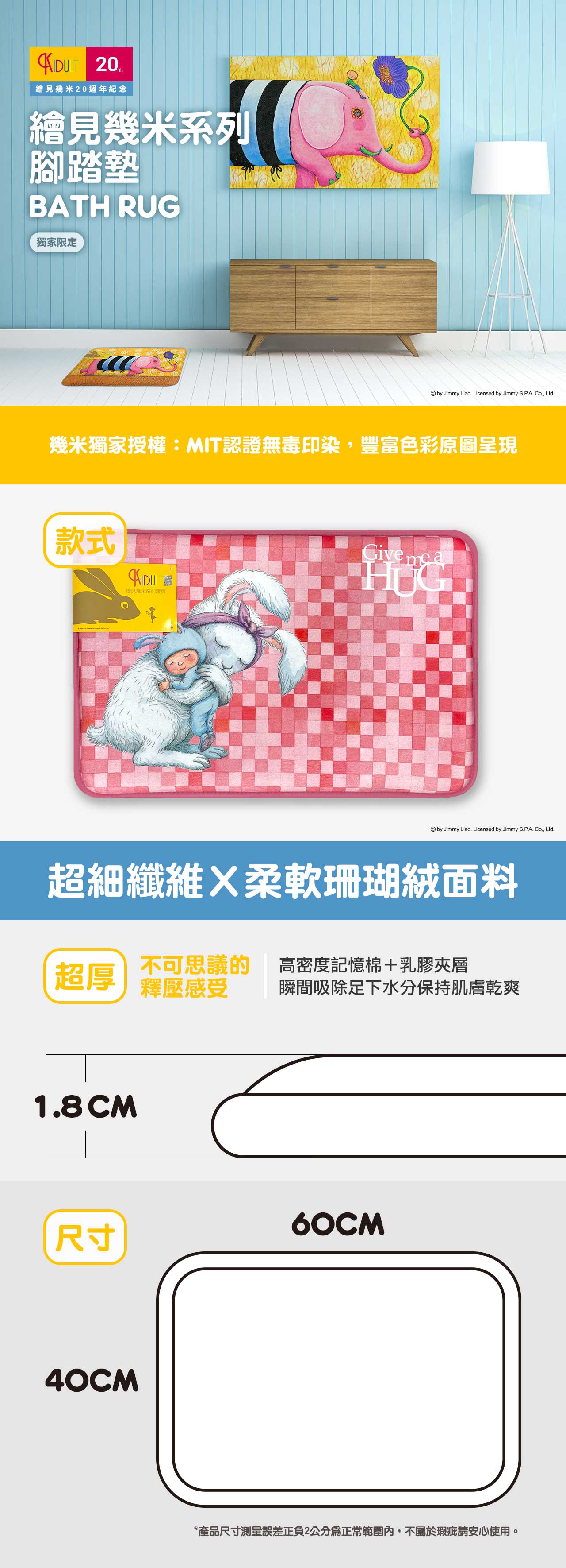 【繪見幾米】漂浮男孩 抗菌吸水釋壓 記憶腳踏墊