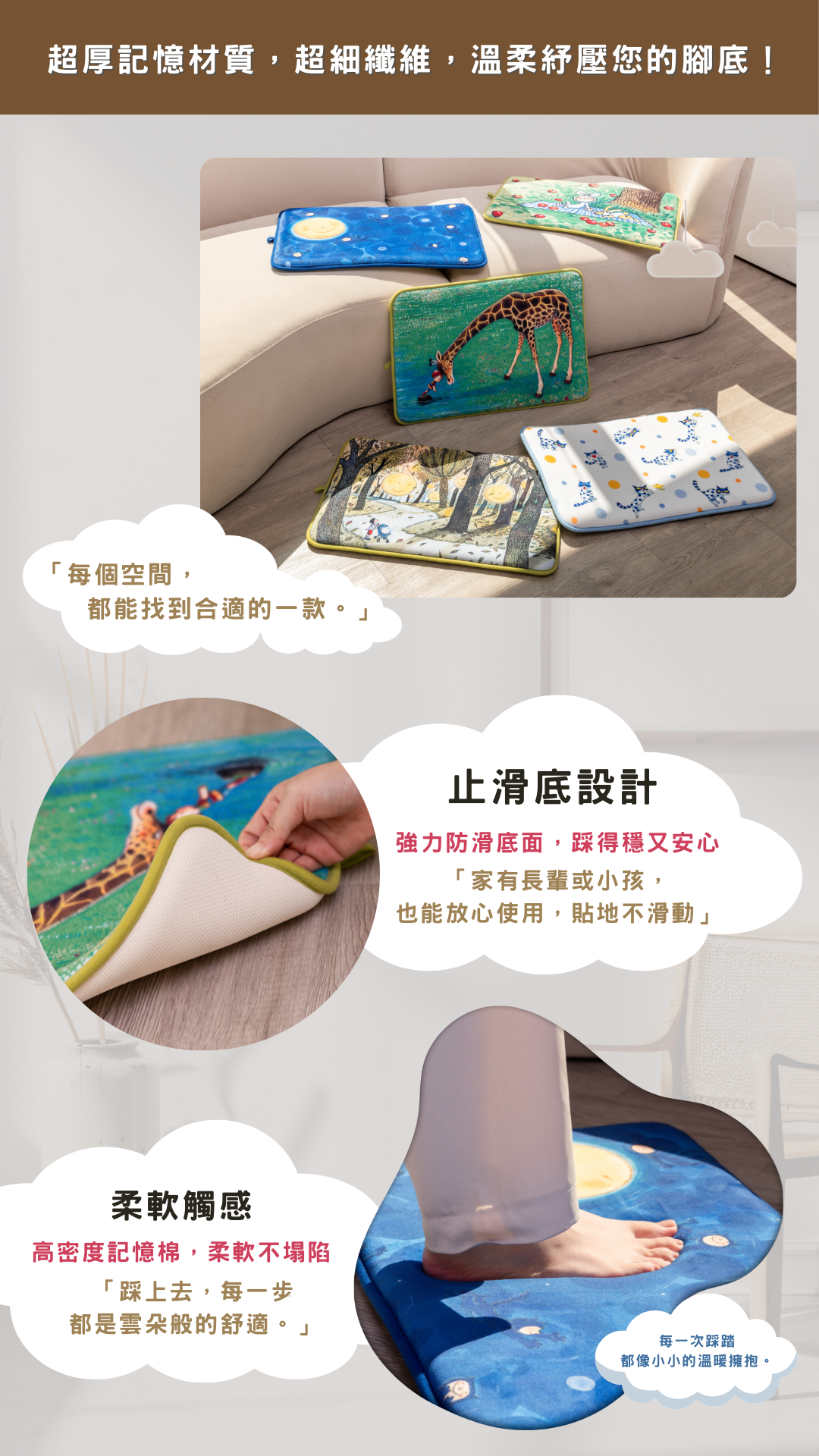 超厚記憶材質,超細纖維,溫柔紓壓您的腳底!