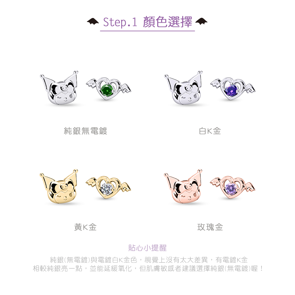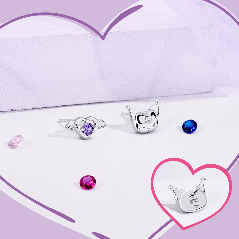 STORY故事銀飾-Kuromi & MyMelody邱比特系列-酷洛米小翅膀誕生石純銀耳環