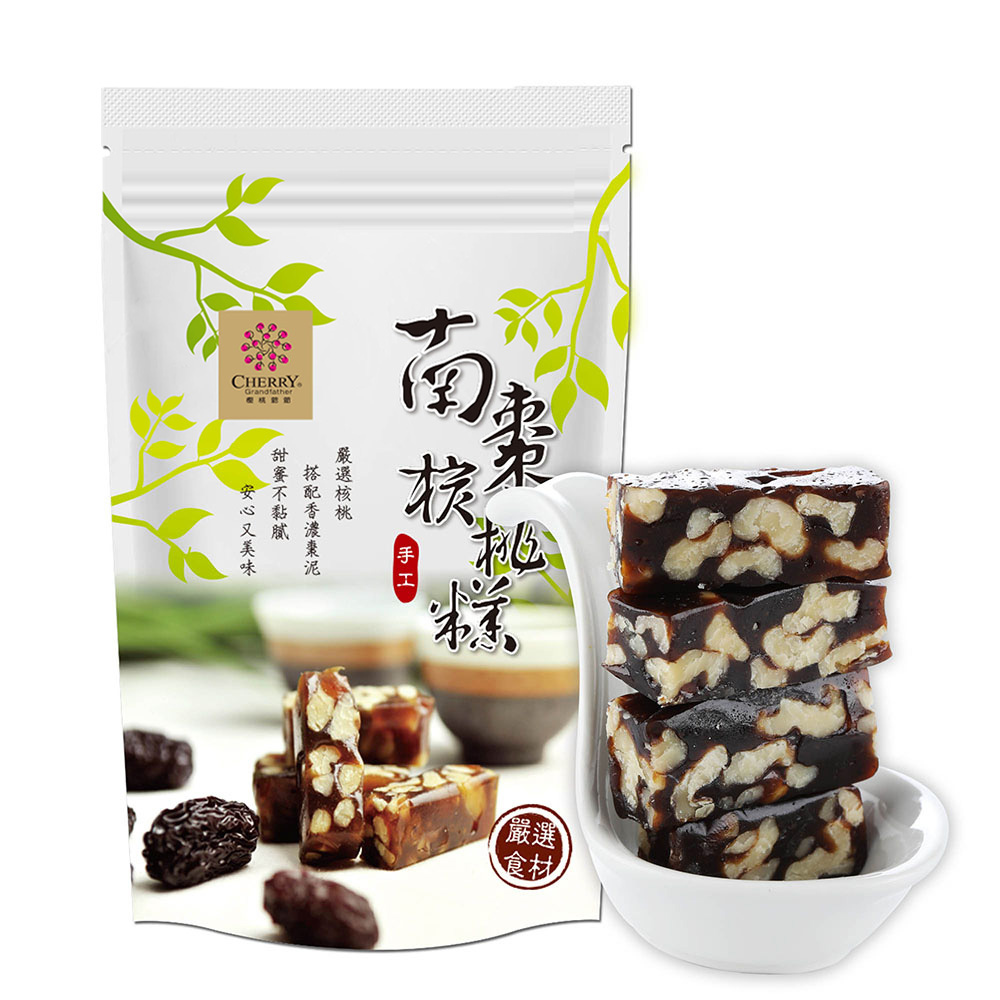 1.商品組合/規格:【櫻桃爺爺】南棗核桃糕(250g/包)2.商品重(容)量:250g/包3.內容物成分(如含有豬、牛成分請加註國別):精選加州核桃、麥芽糖、純棗泥漿(黑棗、紅棗、砂糖、麥芽糖漿、大豆油)、砂糖、棗泥豆沙(黑棗、白鳳豆、砂糖、紅豆、麥芽糖、大豆油)、大豆油、海藻糖、馬鈴薯澱粉、玉米澱粉、在來米粉、鹽