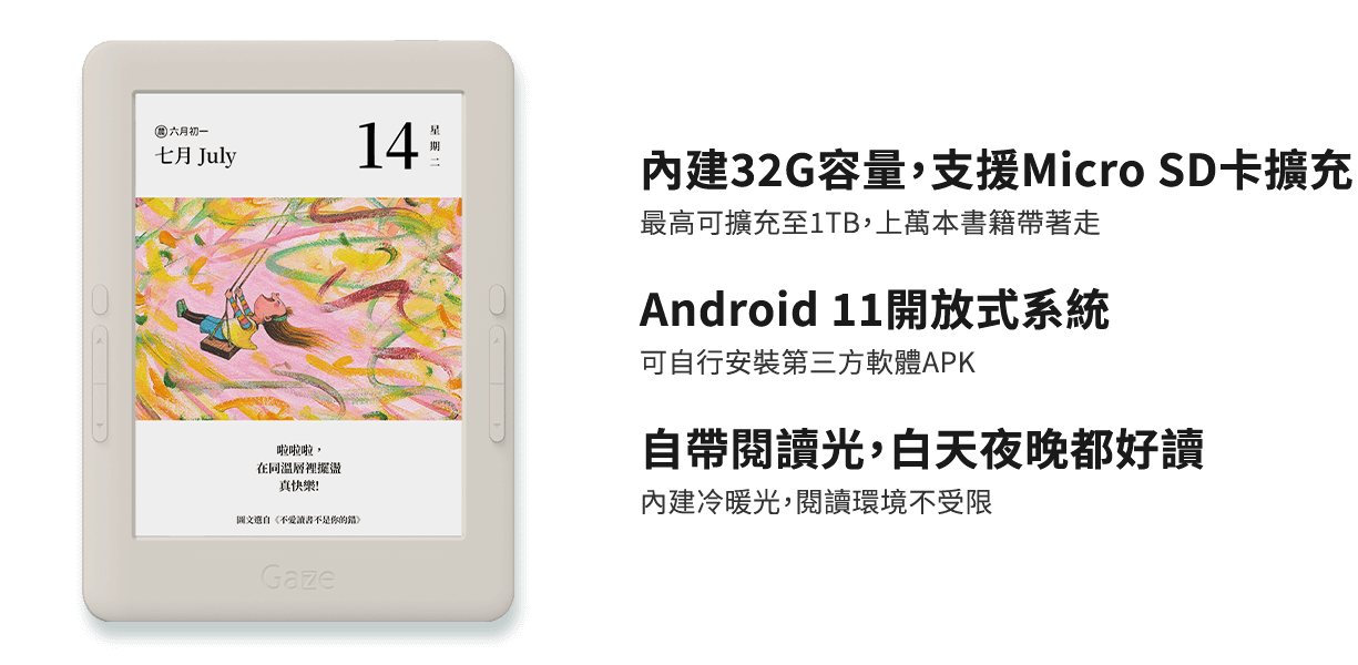 內附充電/傳輸線1條NCC型式認證號碼:CCAJ25LPAFE0T7螢幕特性:電子紙閱讀器採E Ink電子紙顯示器,如紙般輕薄,由塑膠薄膜及薄玻璃製成,與生活中使用的LCD螢幕完全不同,無法承受外力撞擊、摔落、單點施壓、物品重壓等,皆可能造成螢幕損壞,請您使用上務必留意。