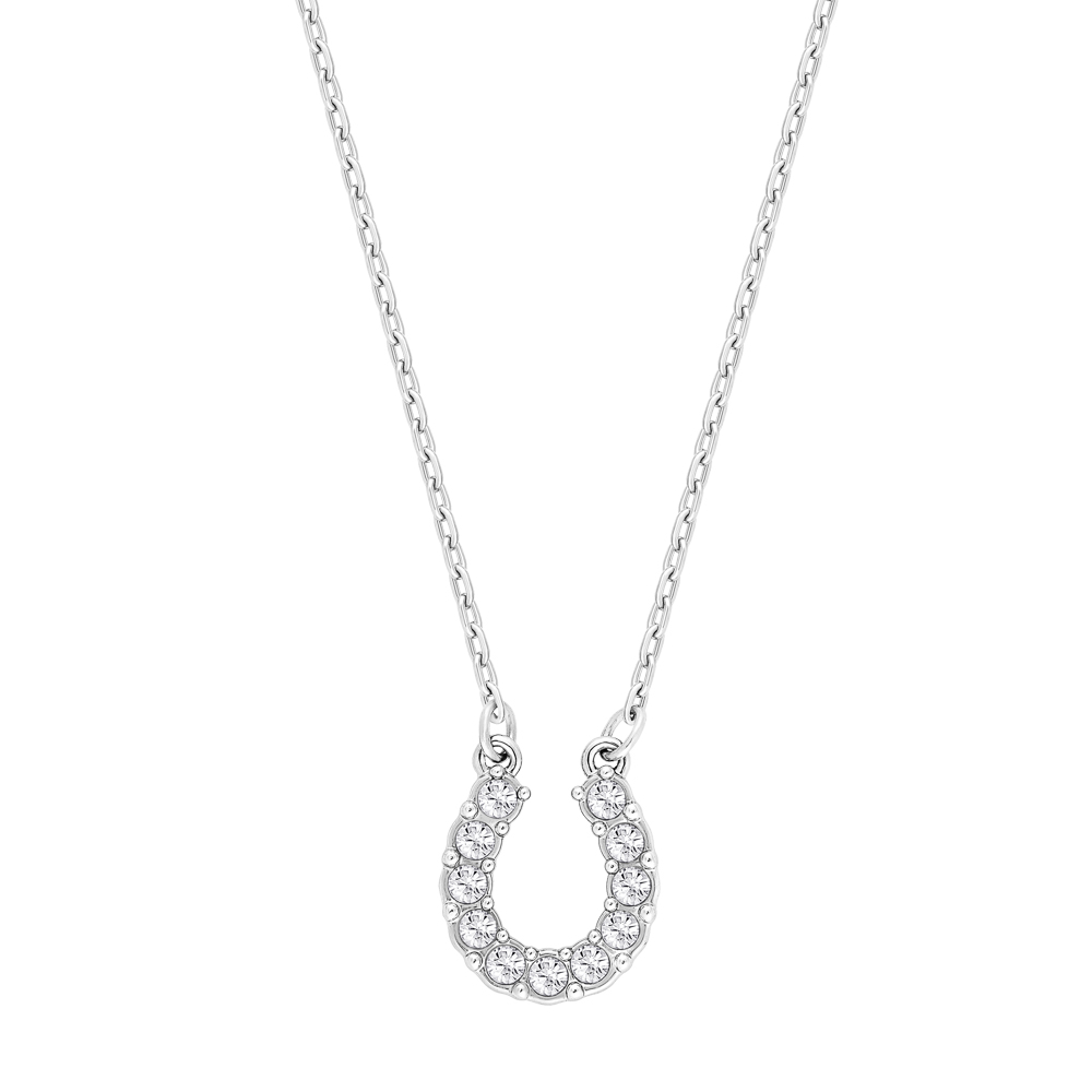佩戴這款小巧迷人的項鏈,讓幸運常伴您身邊﹗這款輕巧精緻的鍍白金色項鏈,以象徵幸運的經典馬蹄鐵造型為亮點,並飾有閃爍悅目的透明密鑲水晶,加上隨附飾鏈,是送給特別一位的甜美之選。