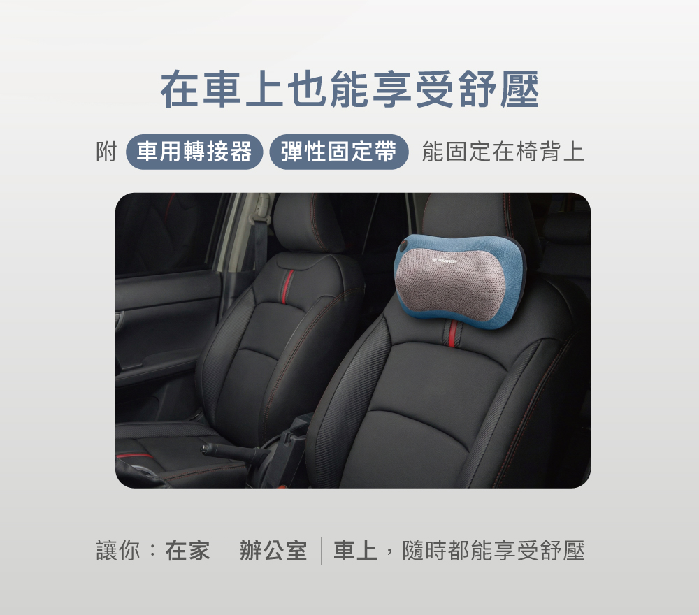 【按摩枕 商品介紹】◆3組自動程式、傳導式溫熱 ◆定時15分鐘、過載保護裝置 ◆附車用轉接器、彈性固定帶