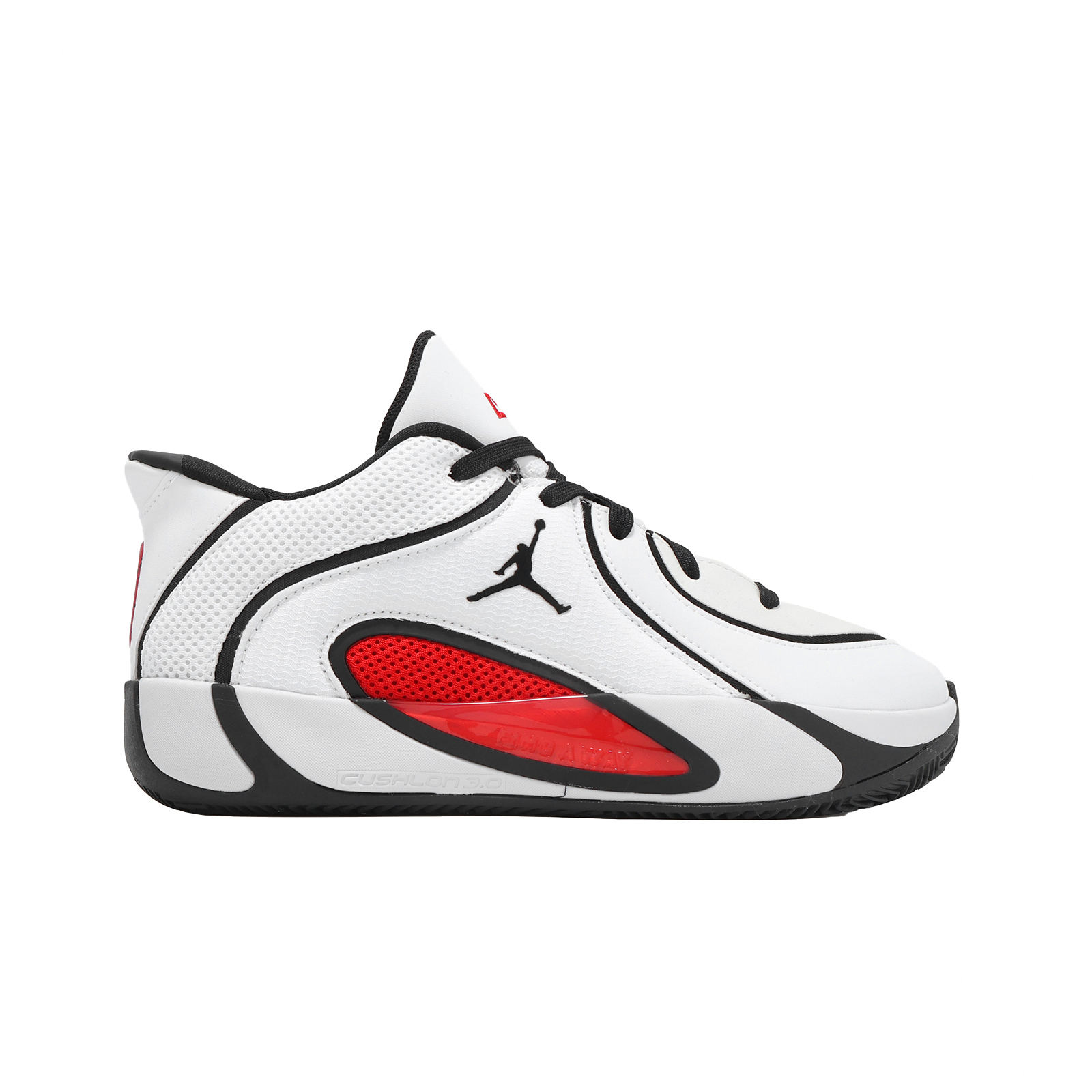 品牌: NIKE型號: HQ4611-101品名: Jordan Tatum 4 GS版型: 版型正常* 全新 Jordan Tatum 4 以喬丹最經典的核心配色,以黑色、白色和大學紅的核心組合呈現' Bloodline '血統的純正地位,鞋後跟以「0」字樣呈現。