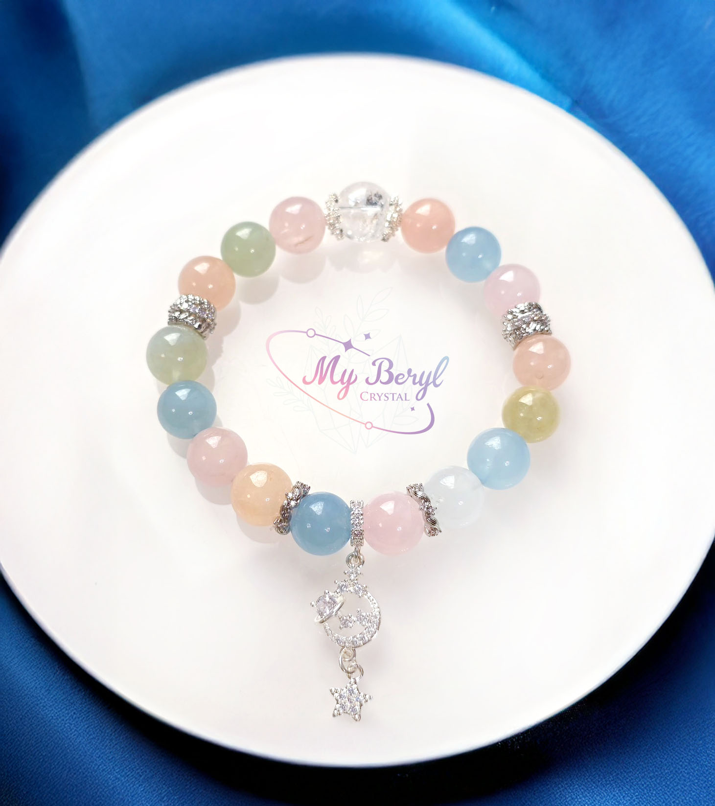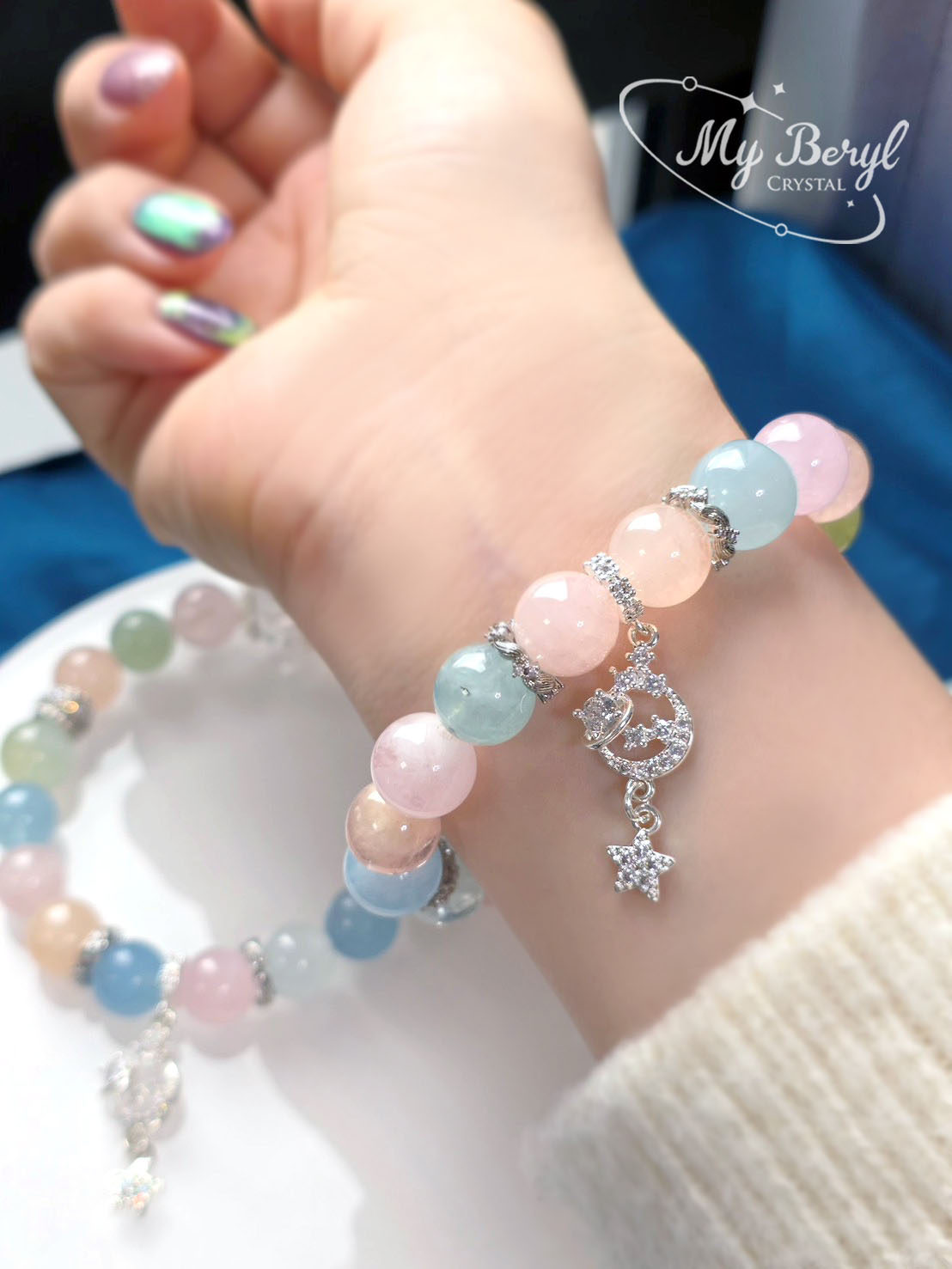 名稱:【My Beryl 水晶】彩色摩根石|療癒之光・幻彩星月守護能量手鍊
