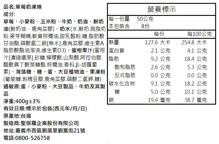 聖保羅 - 草莓奶凍捲1條(400g/條)