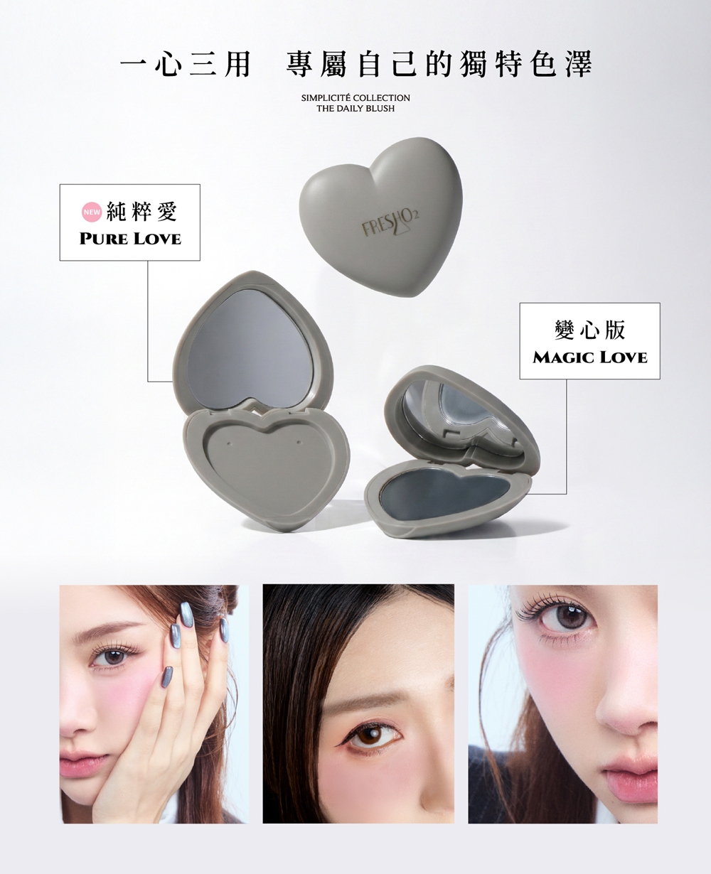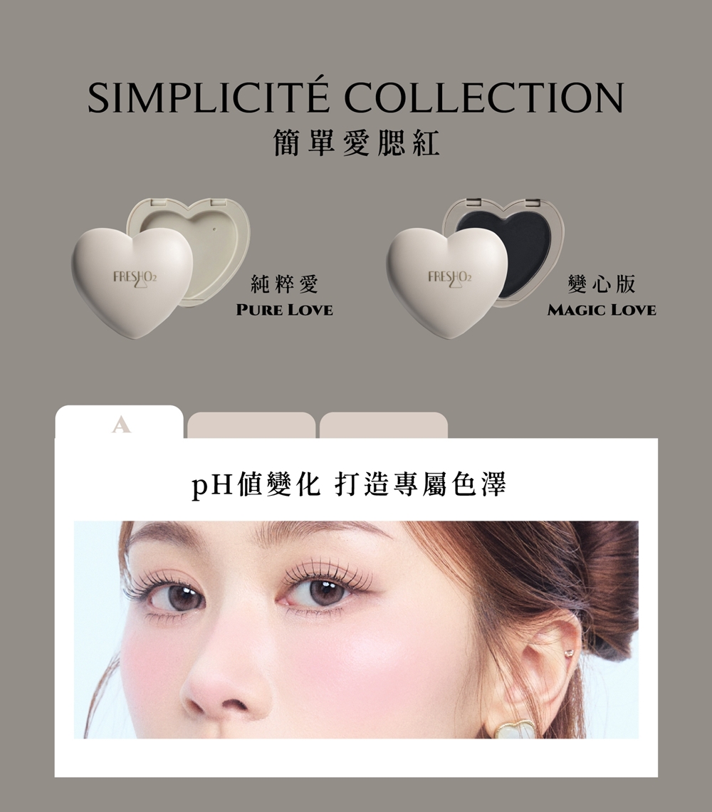眼頰唇色,隨心所欲,隨pH值自動換色成專屬自己的腮紅。