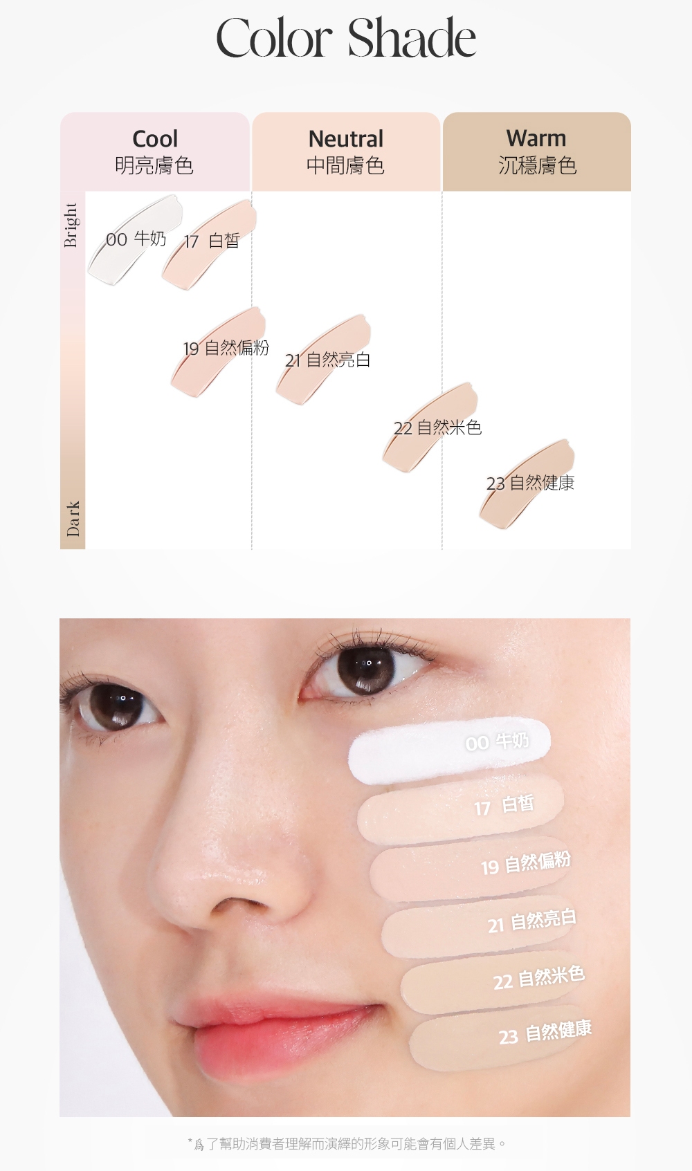 以下為各色號示意圖: