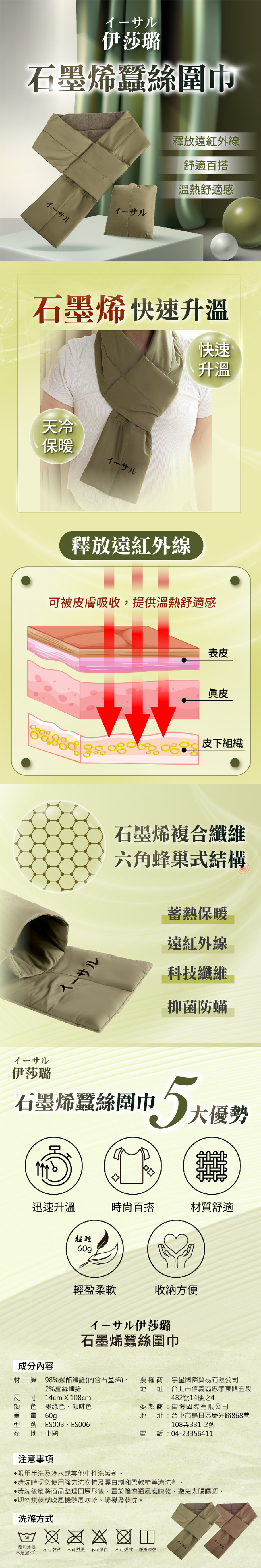 內容物名稱(成分):98%聚酯纖維(內含石墨烯)、2%蠶絲纖維