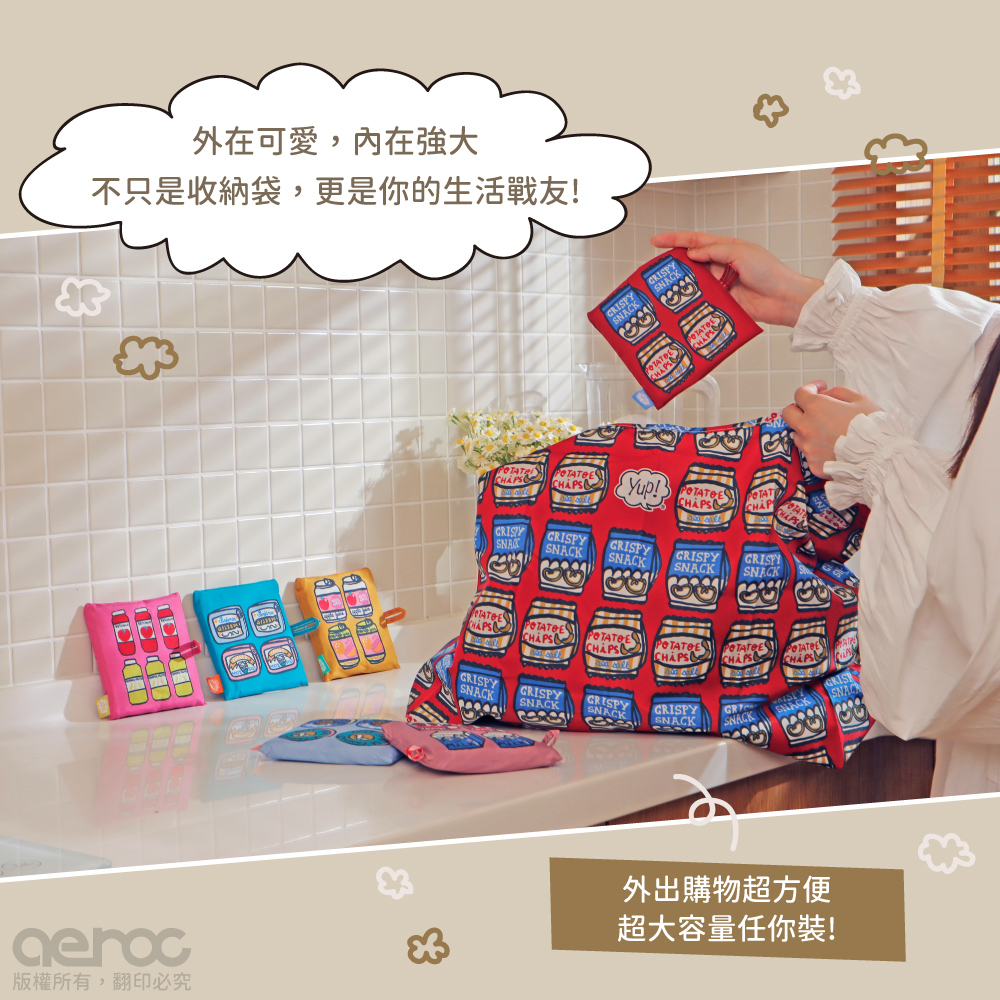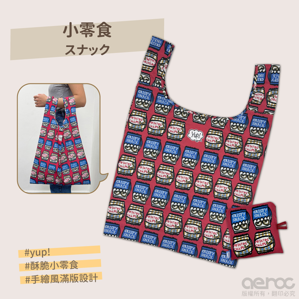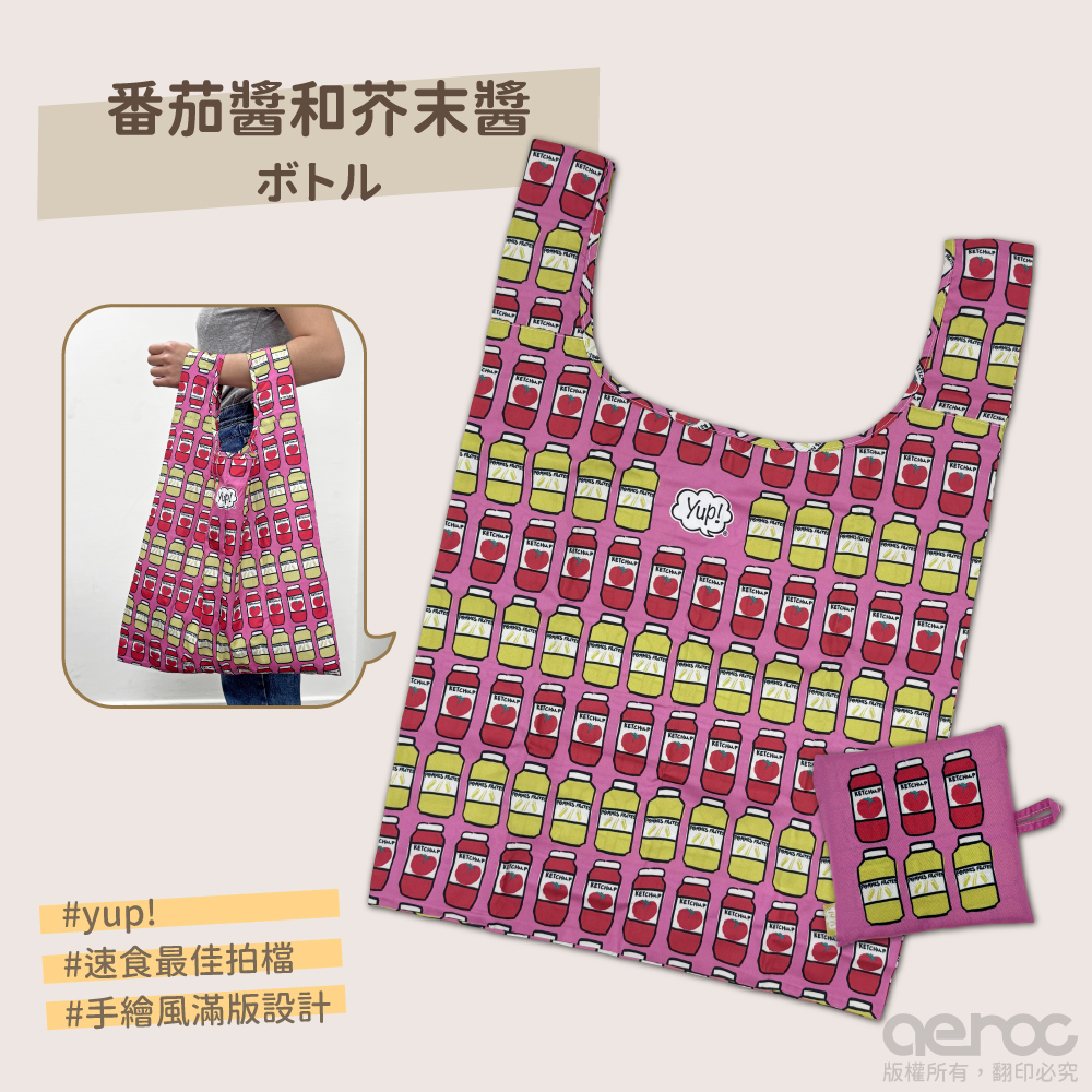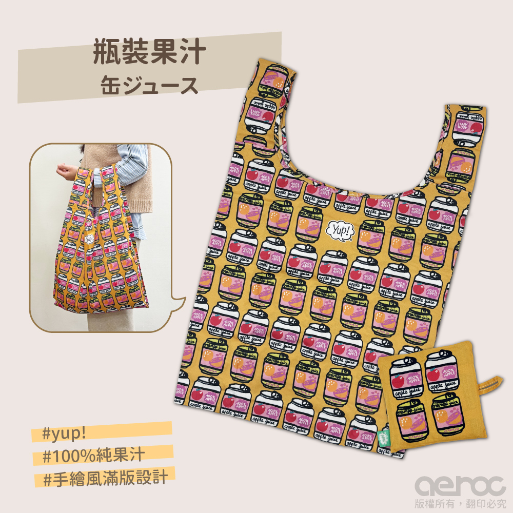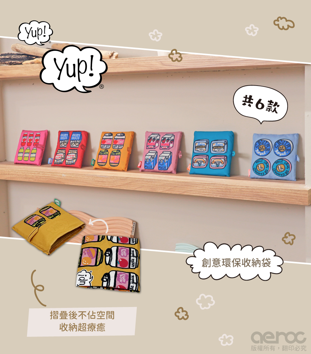 yup!創意收納環保袋,手繪風圖案搭配滿版設計折疊後不占包包空間,超大容量出門任你裝!不只是收納袋,更是你的生活戰友!yup!系列以生活周遭常見的食物為發想,趣味設計讓人看著就開心一整天!"