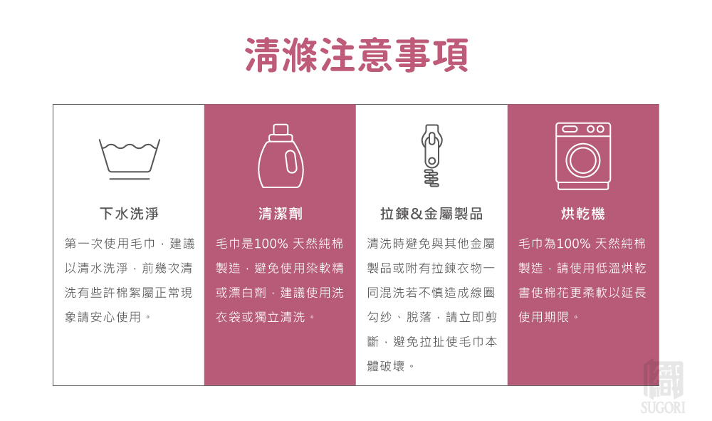 7.毛巾因屬個人衛生用品,拆封即視同購買,拆封商品前請務必三思,以免影響自身權益。