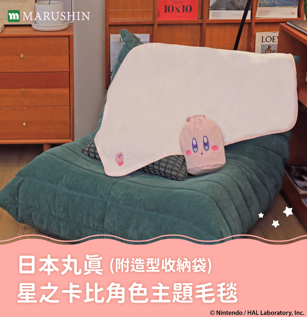 【商品內容】日本丸真 星之卡比 角色主題毛毯(附造型收納袋)
