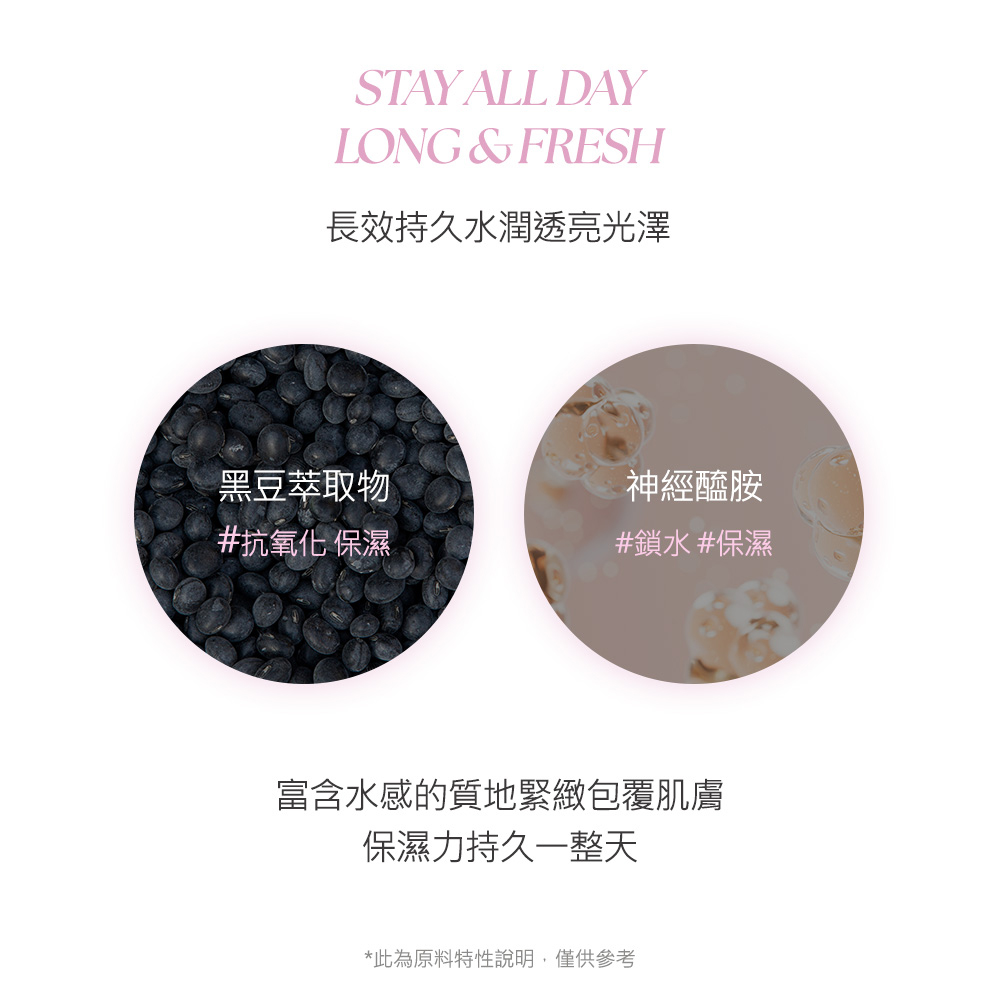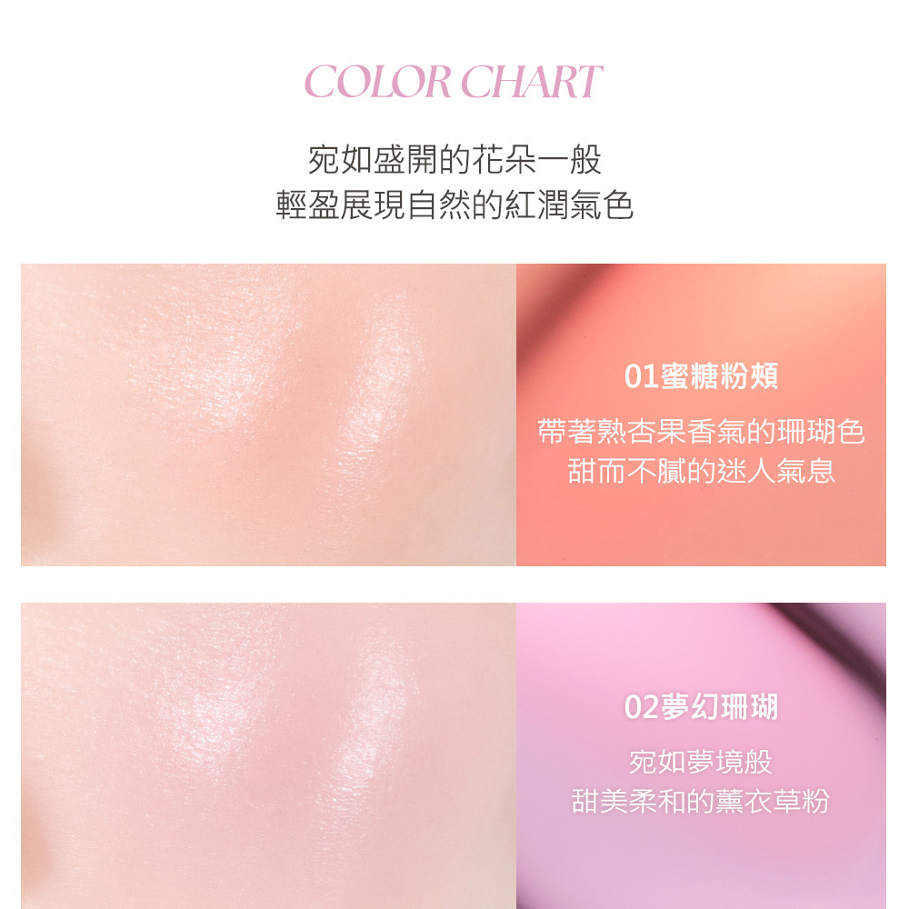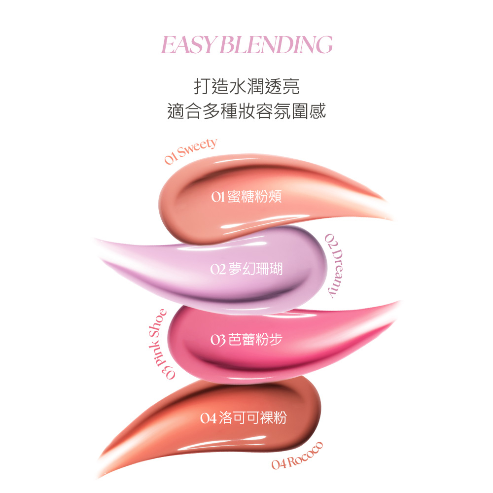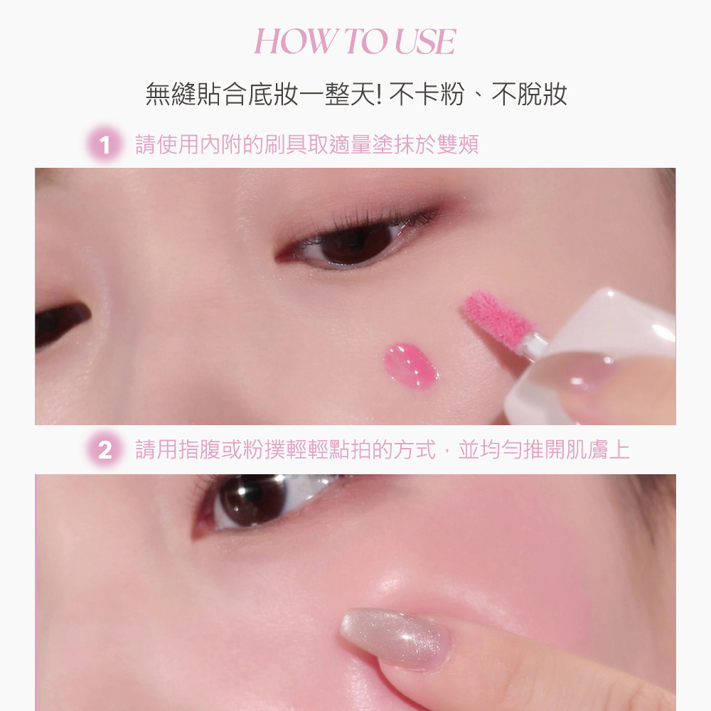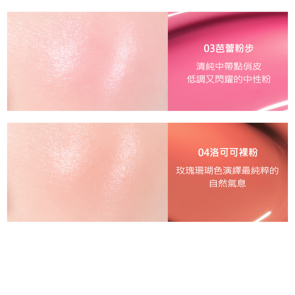 ▪️ 精華級保養成分・妝後依然水嫩▪️液態精華水光質地,一抹即暈染出水光紅暈▪️堆疊也不厚重,呈現從肌底透出的自然氣色
