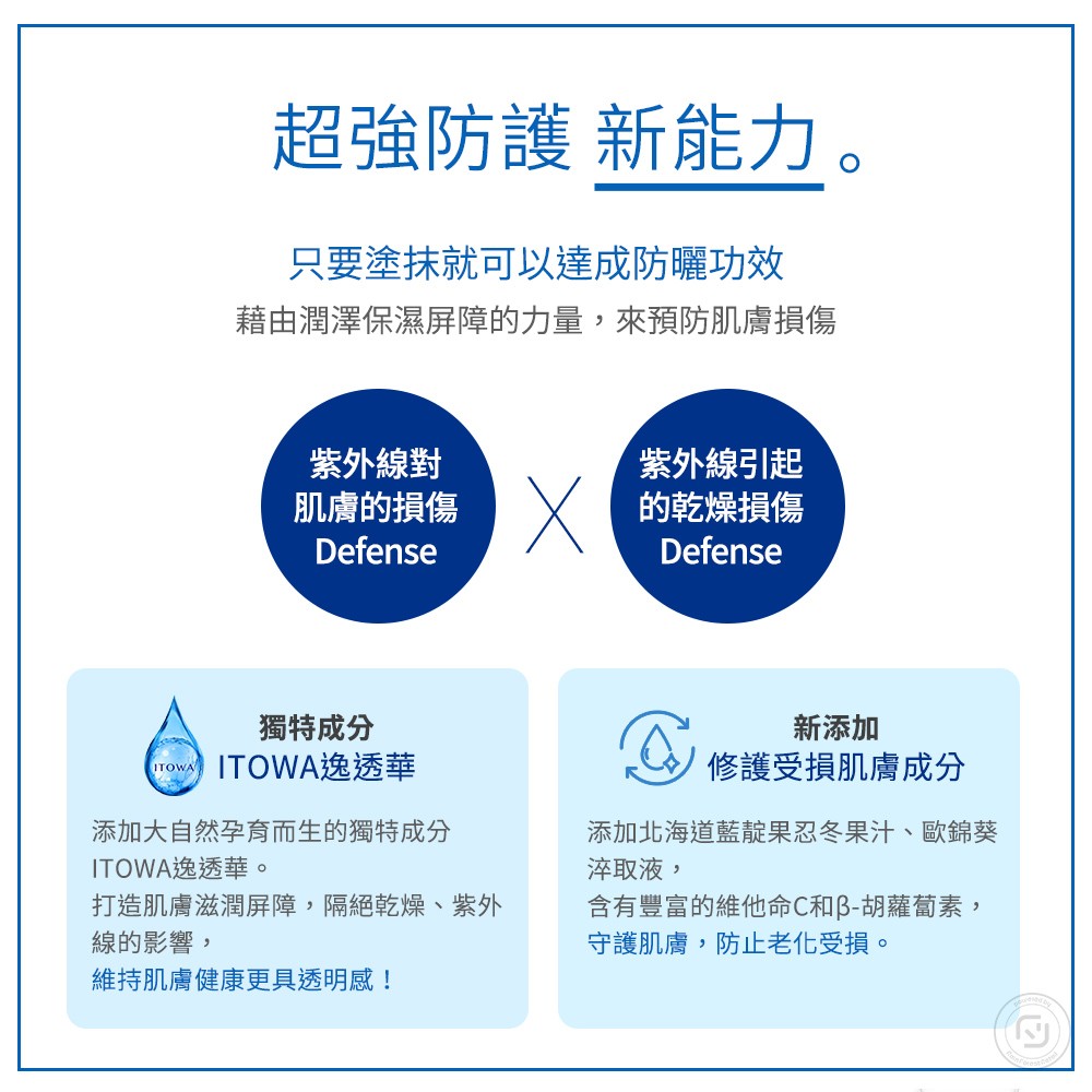守護肌膚免於強力紫外線所造成的傷害,同時預防斑點、乾燥、粗糙,實現肌膚充滿透明感的美肌效果。