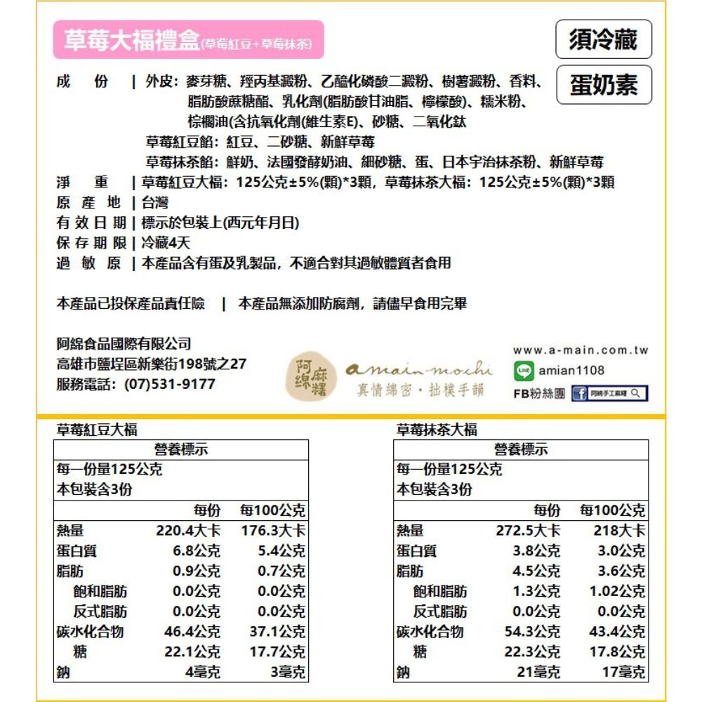 1. 紅豆草莓3入+抹茶草莓3入(125g±10%/入),6入/盒