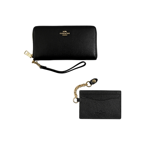 [平輸版] 【COACH】黑色荔枝紋附活動卡夾皮革手掛帶拉鍊長夾 真品平輸 | NearMe | 線上送禮平台『獨家支援 收禮者改選禮物』