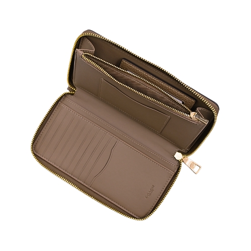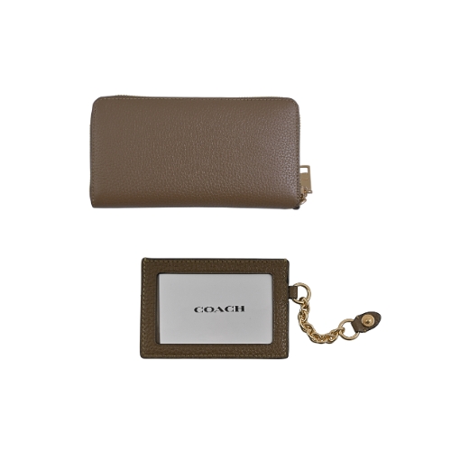 [平輸版] 【COACH】灰褐色荔枝紋皮革附活動卡夾皮革手掛帶拉鍊長夾 真品平輸 | NearMe | 線上送禮平台『獨家支援 收禮者改選禮物』