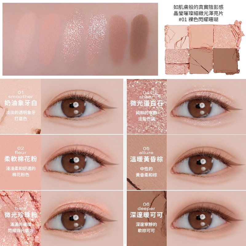 商品內容:品牌名稱:BBIA產品名稱:璀璨絲絨六色眼影盤