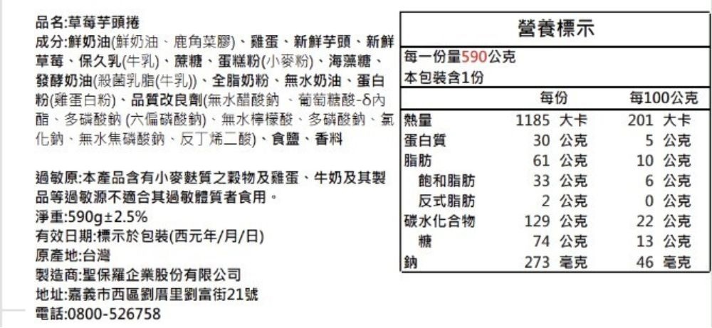 聖保羅 - 草莓芋頭捲1條(590g/條)