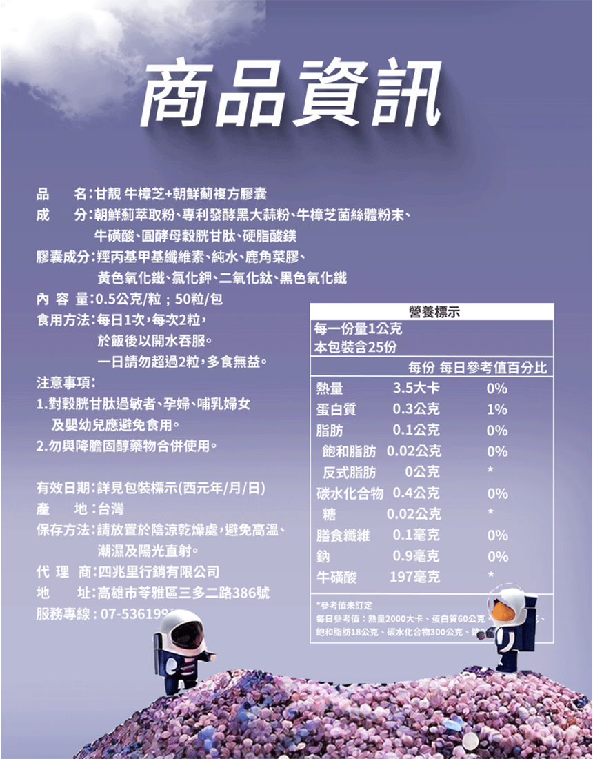 嚴選牛樟芝與朝鮮薊,搭配黑大蒜、牛磺酸、穀胱甘肽
