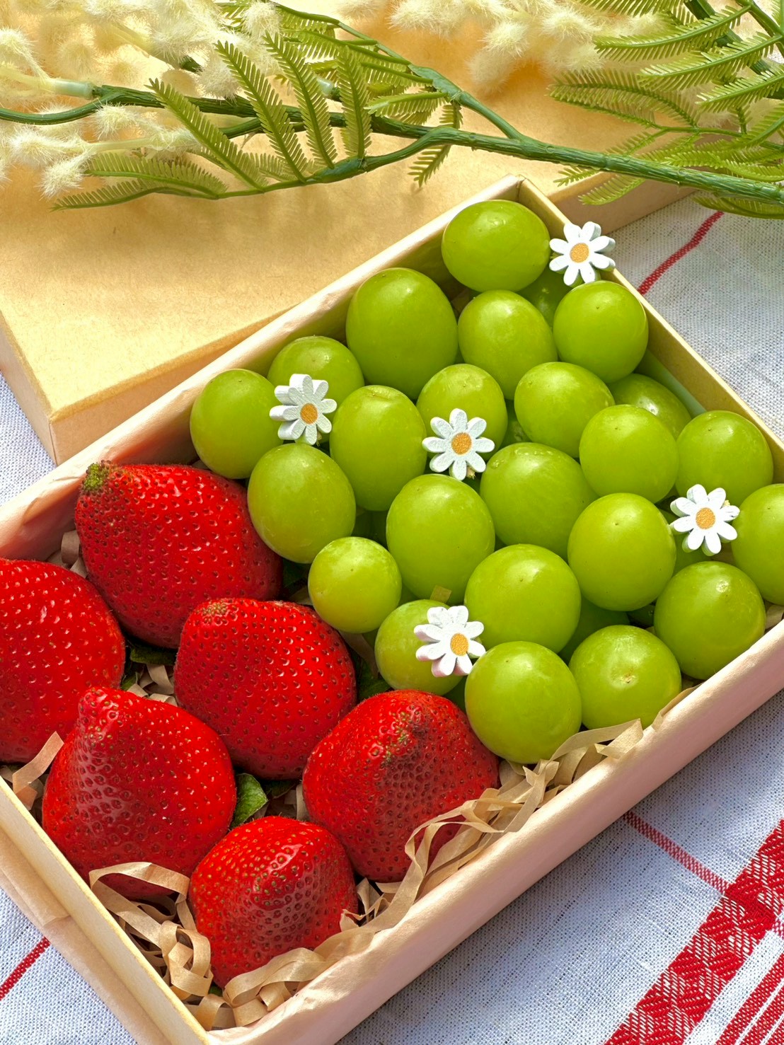 🔍 商品內容 • 台灣當季草莓 • 秋脆綠無籽葡萄(美國/祕魯產區)• 草莓與葡萄依實際到貨品質安排出貨 • 規格:草莓約 150g~200g ±5% / 秋脆綠無籽葡萄約 250g~300g ±5%(依實際出貨為準) • 全程冷藏配送,新鮮直送 💛 你會喜歡它的原因• 台灣草莓香氣濃郁、甜酸平衡,果肉細緻多汁 • 秋脆綠無籽葡萄口感爽脆、甜度清爽不膩 • 草莓柔嫩 × 葡萄脆口,口感層次一次滿足 • 精選搭配,適合日常送禮、心意分享 📌 保存方式• 請冷藏保存 4–7°C• 收到後請立即冷藏 • 建議 3–5 天內食用完畢,風味最佳