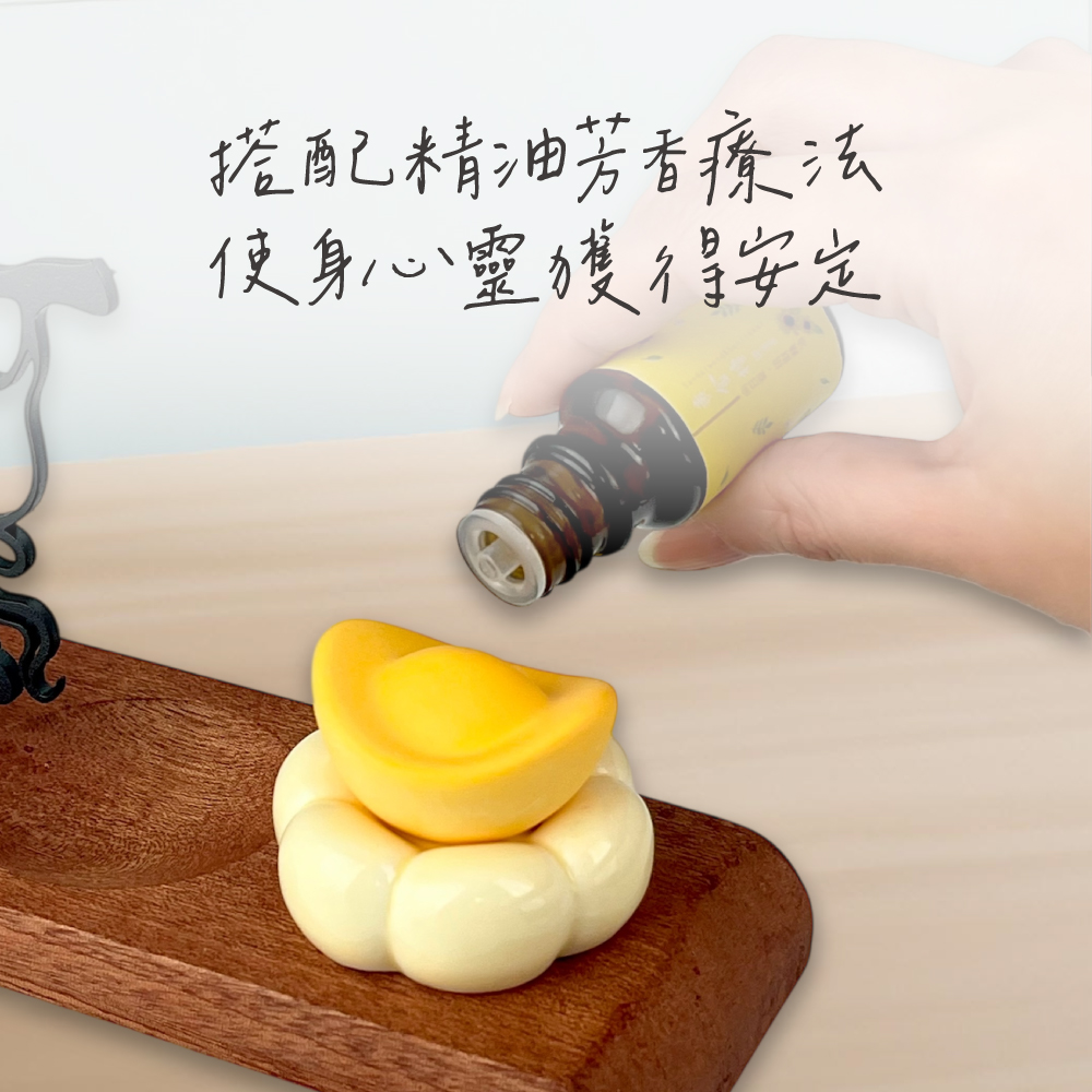 本款香爐除可使用立香外,亦可搭配香塔或葫蘆香置於「有錢花」陶瓷底座上使用,象徵財路開展、能量匯聚,強化香氣與心願的傳遞,有助將空間中的煞氣轉化為流動財氣。另貼心附贈元寶擴香石,可依需求搭配精油進行芳香療癒,讓香氛穩定氣場、釋放壓力,提升整體運勢頻率。