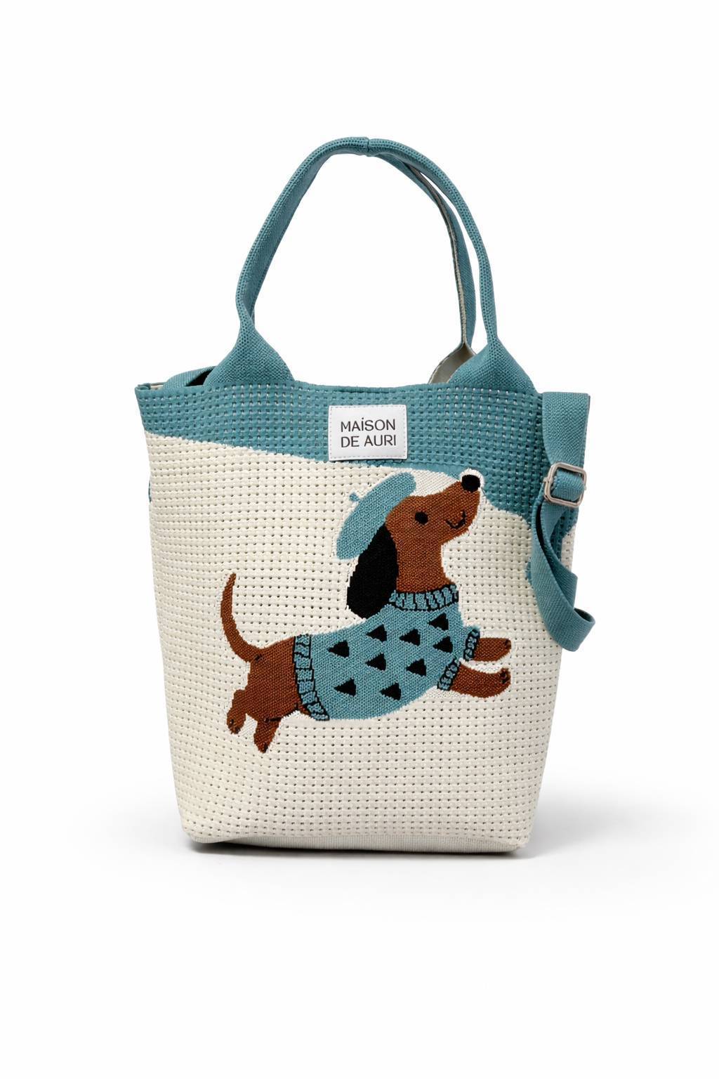 🐾 MAISON DE AURI|TRUNK DACHSiE 系列Grande & Mini|雙尺寸・附背帶Trunk Dachsie 以臘腸狗為靈感,立體臘腸狗針織圖案,療癒吸睛,厚實織紋 × 輕盈手感,耐用不失優雅💙 清新藍調,怎麼搭都可愛