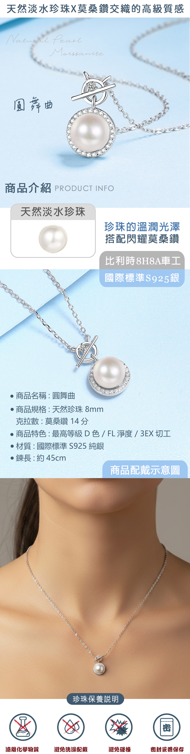 名稱:《圓舞曲》天然淡水珍珠X莫桑鑽項鍊