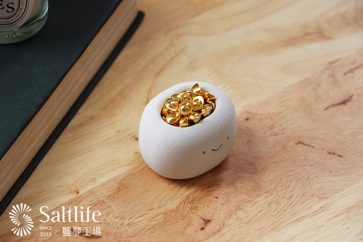 ●「金飯糰」肚子裡裝滿一粒粒閃亮的小元寶,像一顆顆黃金米粒,那是日子裡的好運與小確幸,一點一點累積。擺在書桌、櫃上、財位,用可愛招財,也招來一點好心情。