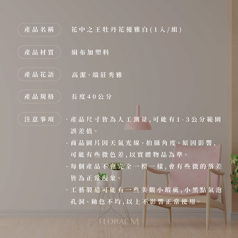 快速出貨🌷家居造景【Floral M】花中之王牡丹花優雅白仿真花花材(1入組) | NearMe | 線上送禮平台『獨家支援 收禮者改選禮物』