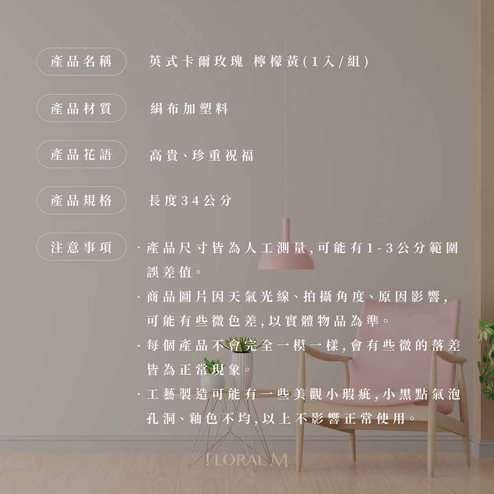 快速出貨🌷家居造景【Floral M】英式卡爾玫瑰檸檬黃仿真花花材(1入組) | NearMe | 線上送禮平台『獨家支援 收禮者改選禮物』