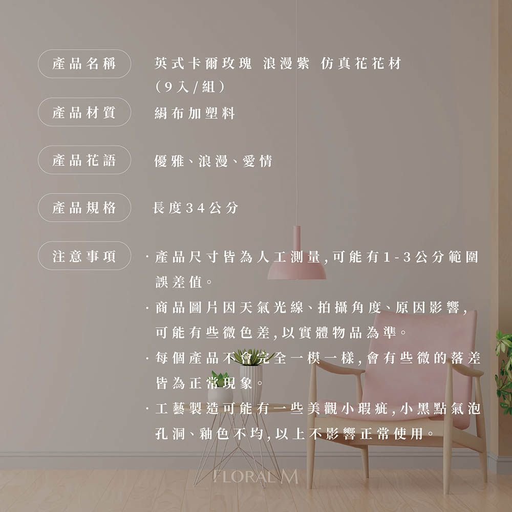 快速出貨🌷家居造景【Floral M】英式卡爾玫瑰浪漫紫仿真花花材(1入組) | NearMe | 線上送禮平台『獨家支援 收禮者改選禮物』