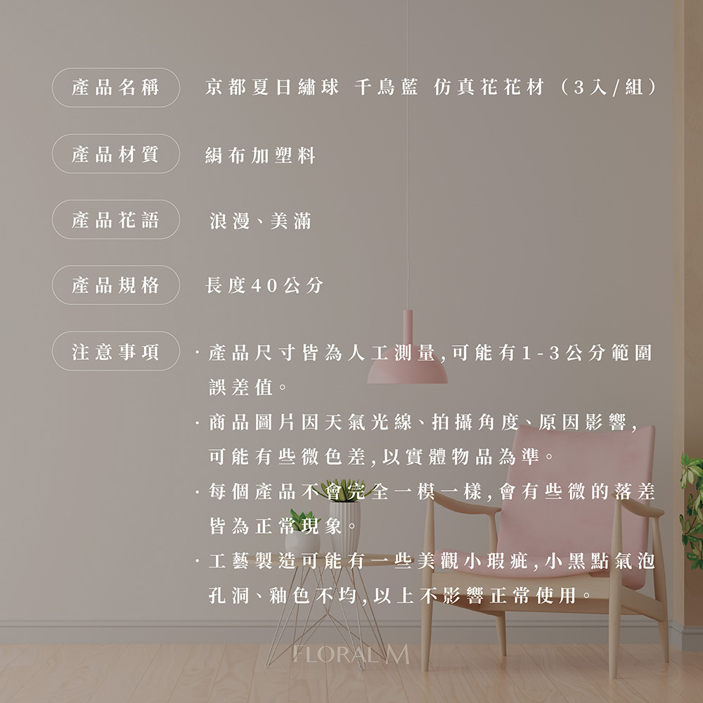 快速出貨🌷家居造景【Floral M】京都夏日繡球千鳥藍仿真花花材(1入組) | NearMe | 線上送禮平台『獨家支援 收禮者改選禮物』