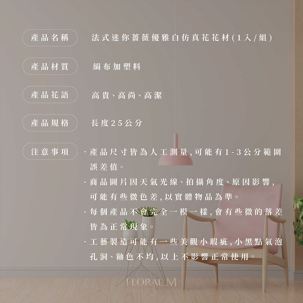 快速出貨🌷家居造景【Floral M】法式迷你薔薇優雅白仿真花花材(1入組) | NearMe | 線上送禮平台『獨家支援 收禮者改選禮物』