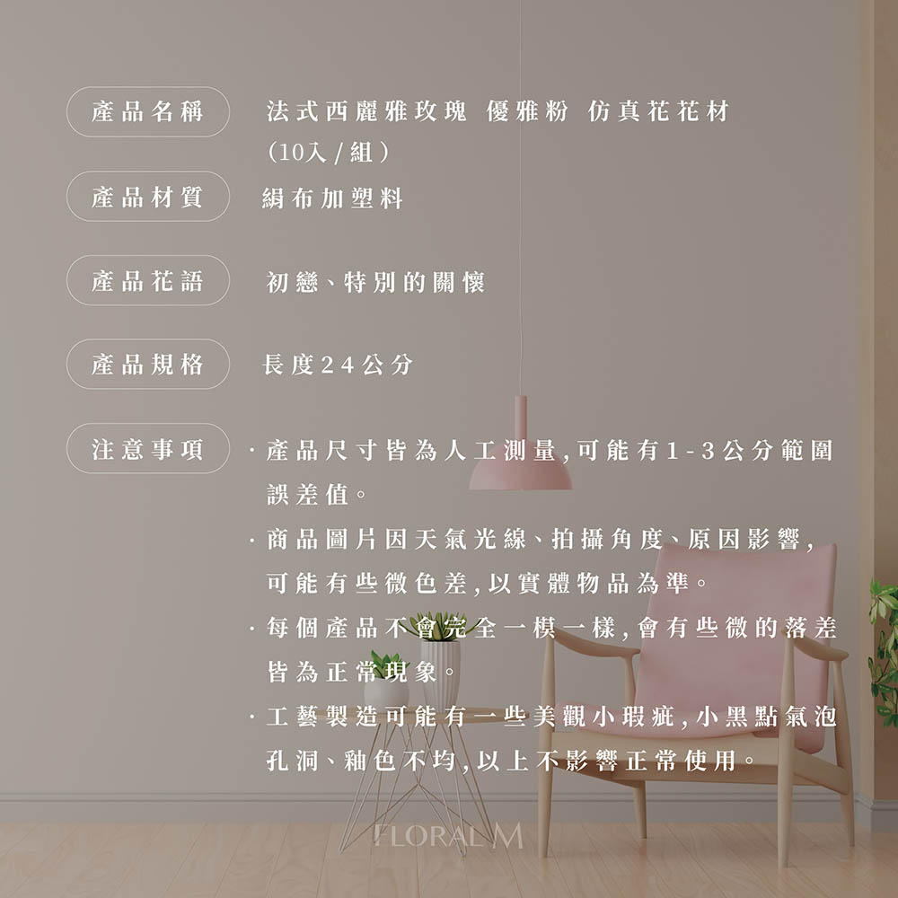 快速出貨🌷家居造景【Floral M】法式西麗雅玫瑰優雅粉仿真花花材(10入組) | NearMe | 線上送禮平台『獨家支援 收禮者改選禮物』