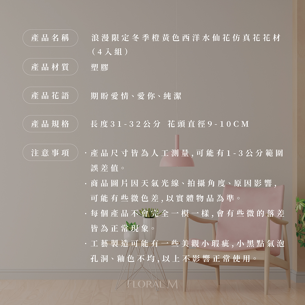 快速出貨🌷家居造景【Floral M】浪漫限定冬季橙黃色西洋水仙花仿真花花材(4入組) | NearMe | 線上送禮平台『獨家支援 收禮者改選禮物』