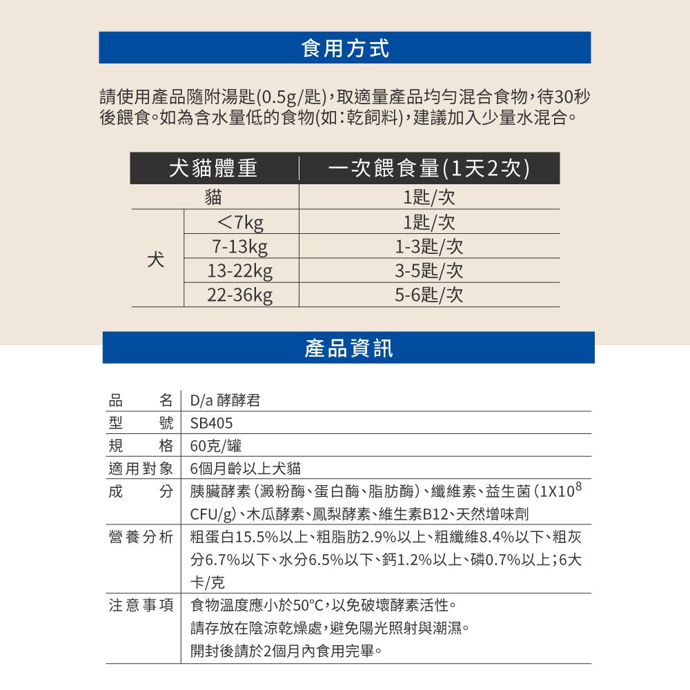 名稱: 韓國SB D/a 酵酵君 (寵物消化酵素) 60g/罐- 犬貓適用