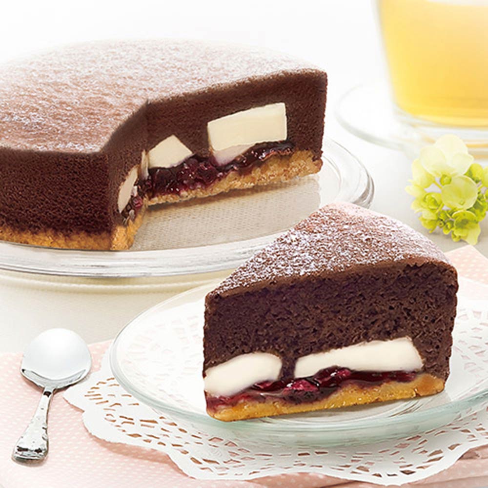 ★ 巧克力-巧克力蛋糕夾進口藍莓餡與原味奶凍,底層搭配酥脆餅乾