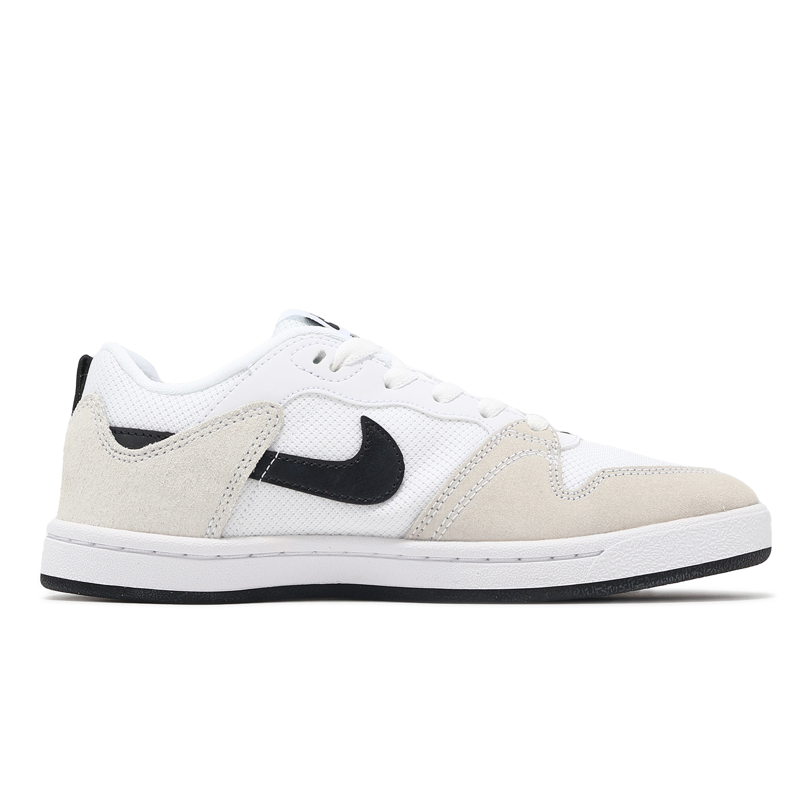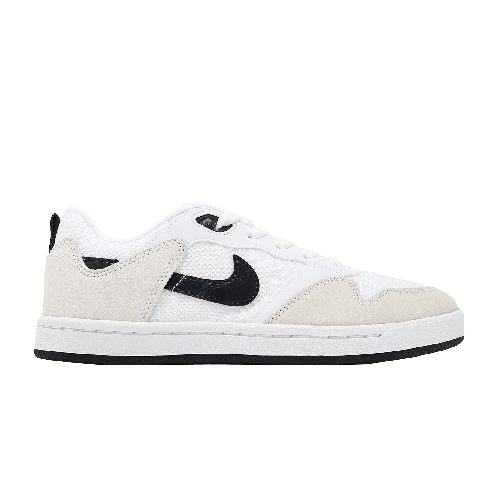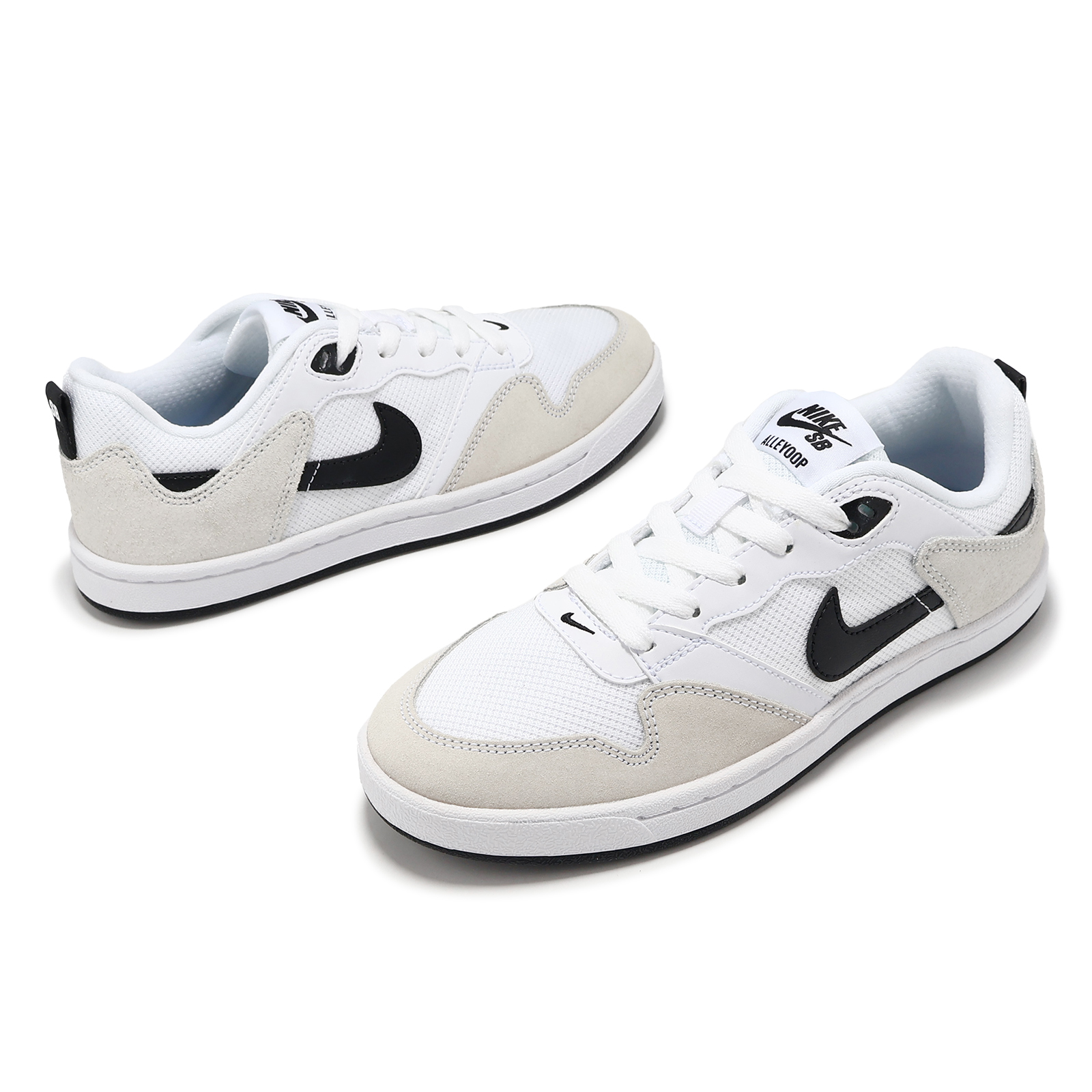 品牌: NIKE型號: CJ0883-100品名: SB Alleyoop GS版型: 版型正常* 鞋身採麂皮材質與網布拼接設計,加強足部舒適性與鞋面耐用性。