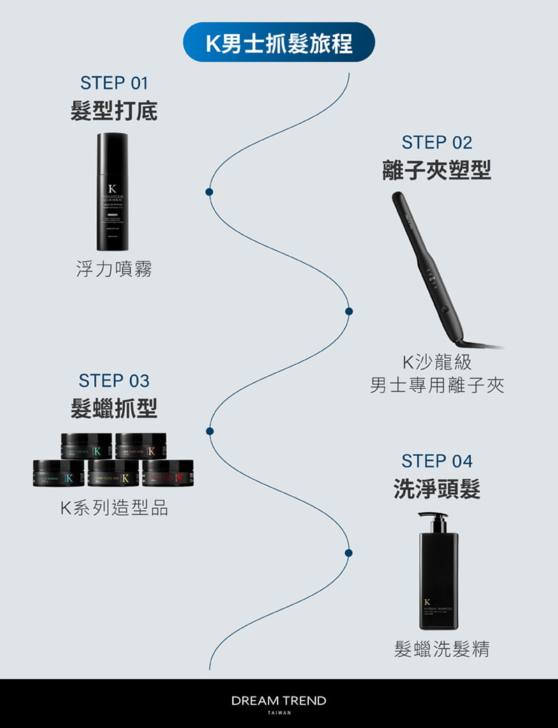 名稱:凱夢DREAM TREND K沙龍級男士專用離子夾+K系列髮蠟五選一