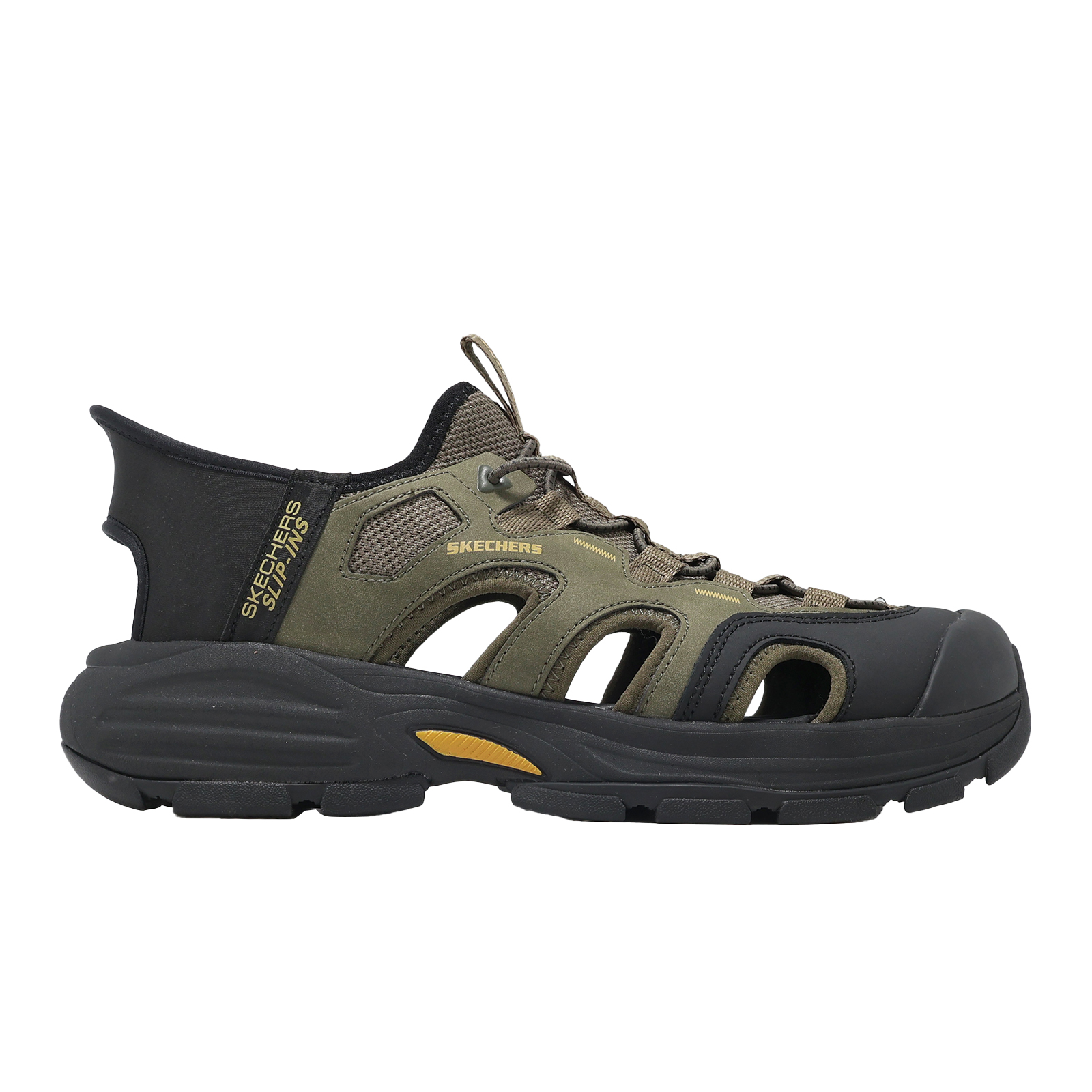 品牌: SKECHERS型號: 205475-OLBK品名: Fairport版型: 版型正常FAIRPORT系列,護趾涼鞋。包頭式護趾設計和側邊鏤空結構,穿著貼合穩定並提供良好透氣性,鞋底延邊使用橡膠,搭配鞋底加深刻痕,強化耐用性和抓地力,是夏日不可或缺的戶外涼鞋。