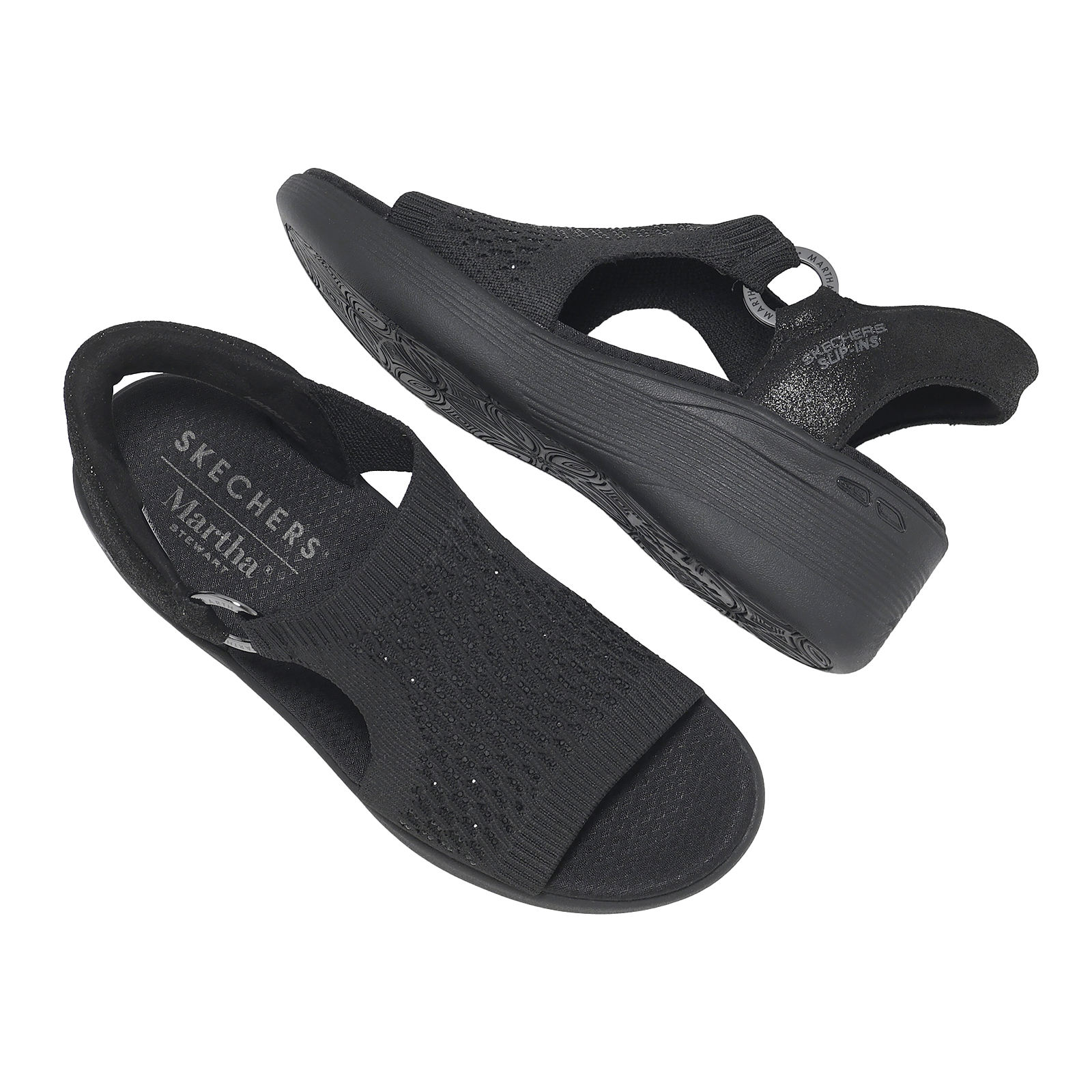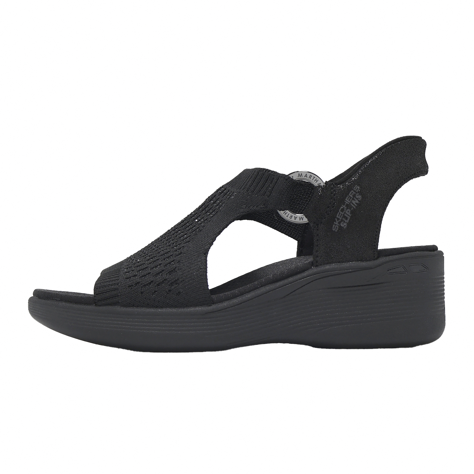 品牌: SKECHERS型號: 188001-BBK品名: Pier Lite Slip-Ins版型: 版型正常備受讚譽的生活方式專家瑪莎·史都華(Martha Stewart) 為 SKECHERS注入了她獨樹一格的風格,打造出這款活力四射的聯名款。PIER-LITE SANDAL_MARTHA STEWART系列,楔型涼鞋。這款時尚楔型涼鞋採用鑲鑽針織鞋面與品牌金屬環細節,搭配LUXE FOAM柔軟泡棉鞋墊,以及 SLIP-INS