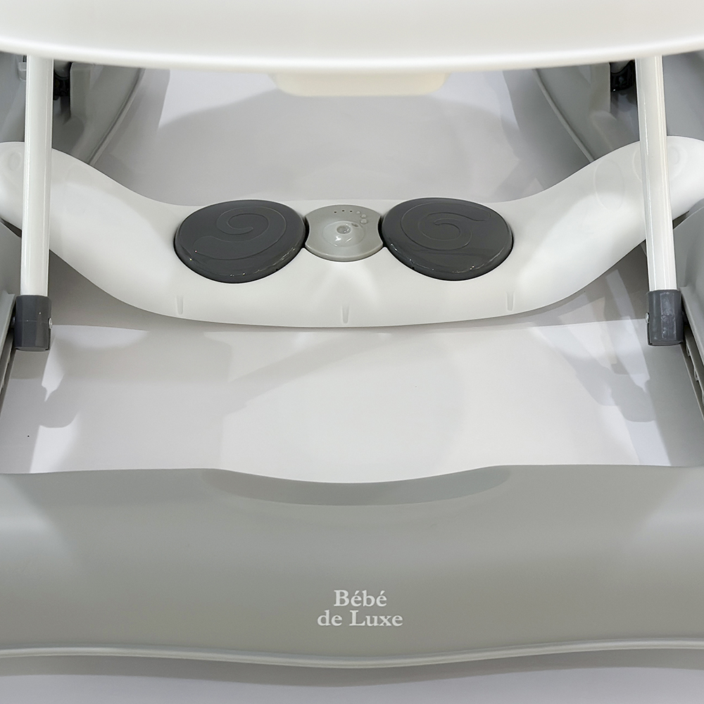 依您寶寶身高可3段式調整學步車高度,並含第二道自動安全鎖鈕裝置,安全加倍。