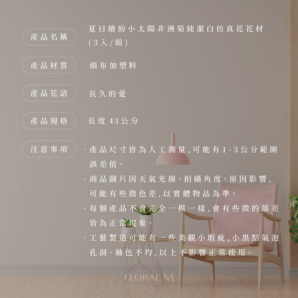 快速出貨🌷家居造景【Floral M】夏日繽紛小太陽非洲菊純潔白仿真花花材(3入組) | NearMe | 線上送禮平台『獨家支援 收禮者改選禮物』