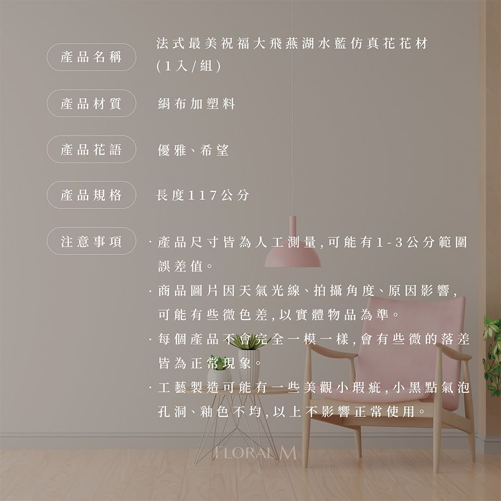 快速出貨🌷家居造景【Floral M】法式最美祝福大飛燕湖水藍仿真花花材(1入組) | NearMe | 線上送禮平台『獨家支援 收禮者改選禮物』