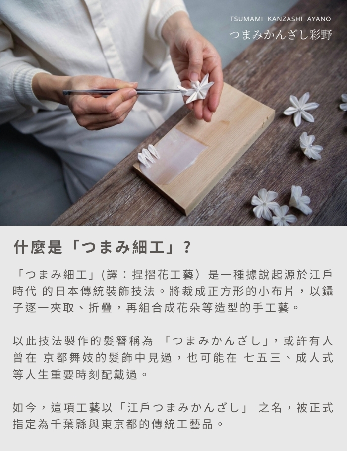 運用千葉縣指定傳統工藝品「江戶つまみかんざし」 所使用的つまみ細工技法,