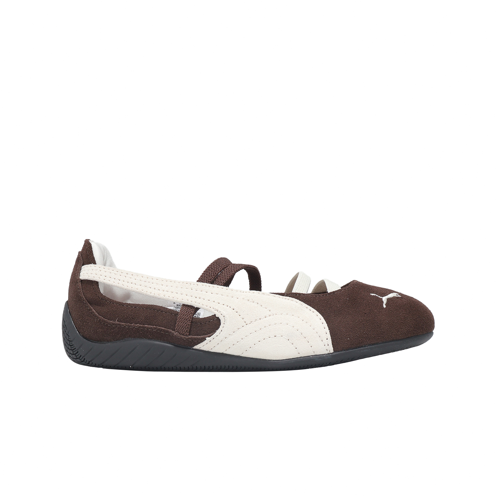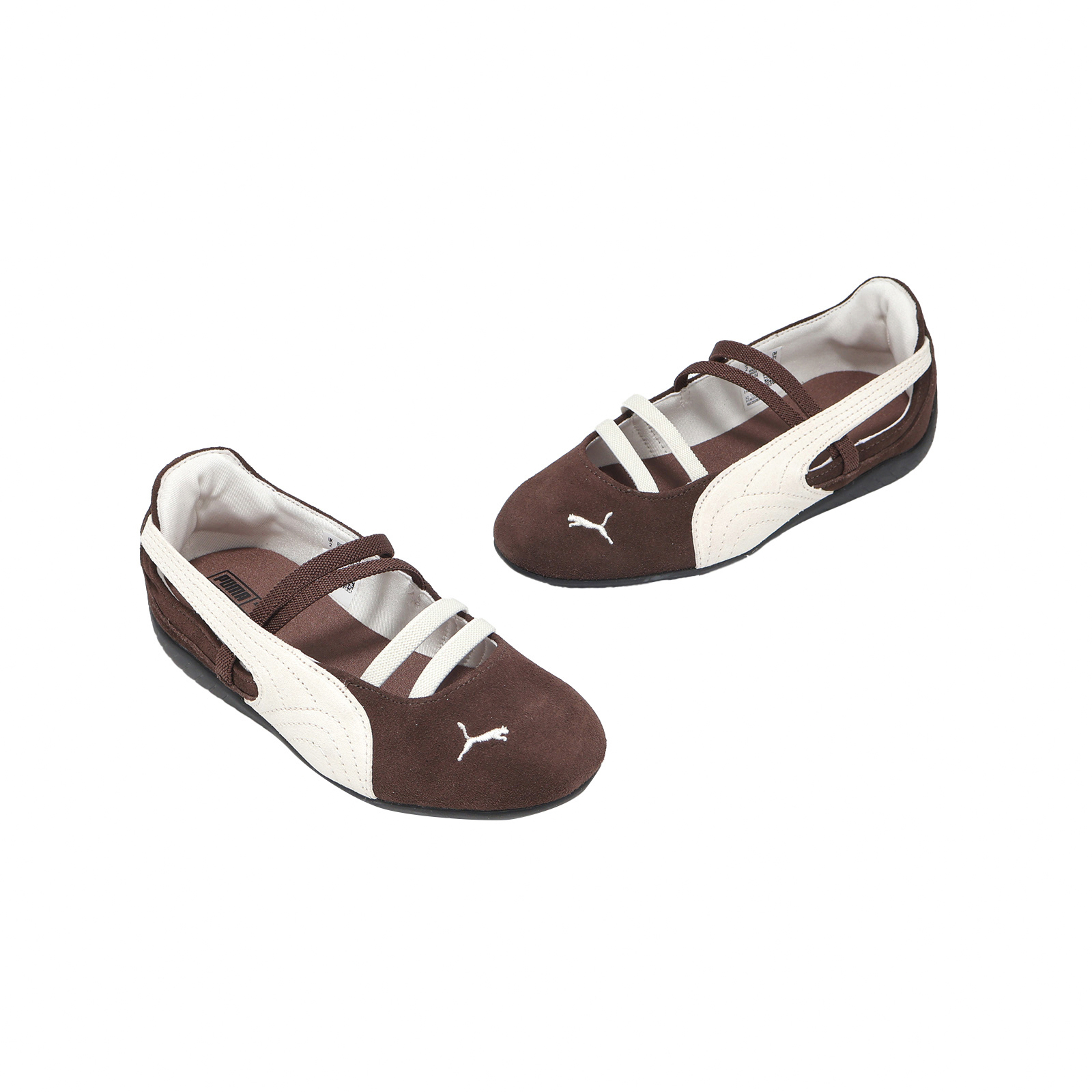 * 保留 PUMA 經典 SPEEDCAT 的俐落輪廓,重新演繹成具有時尚感的芭蕾鞋款,鞋面加入具彈性的橫向鬆緊帶,提升包覆感與穩定性。